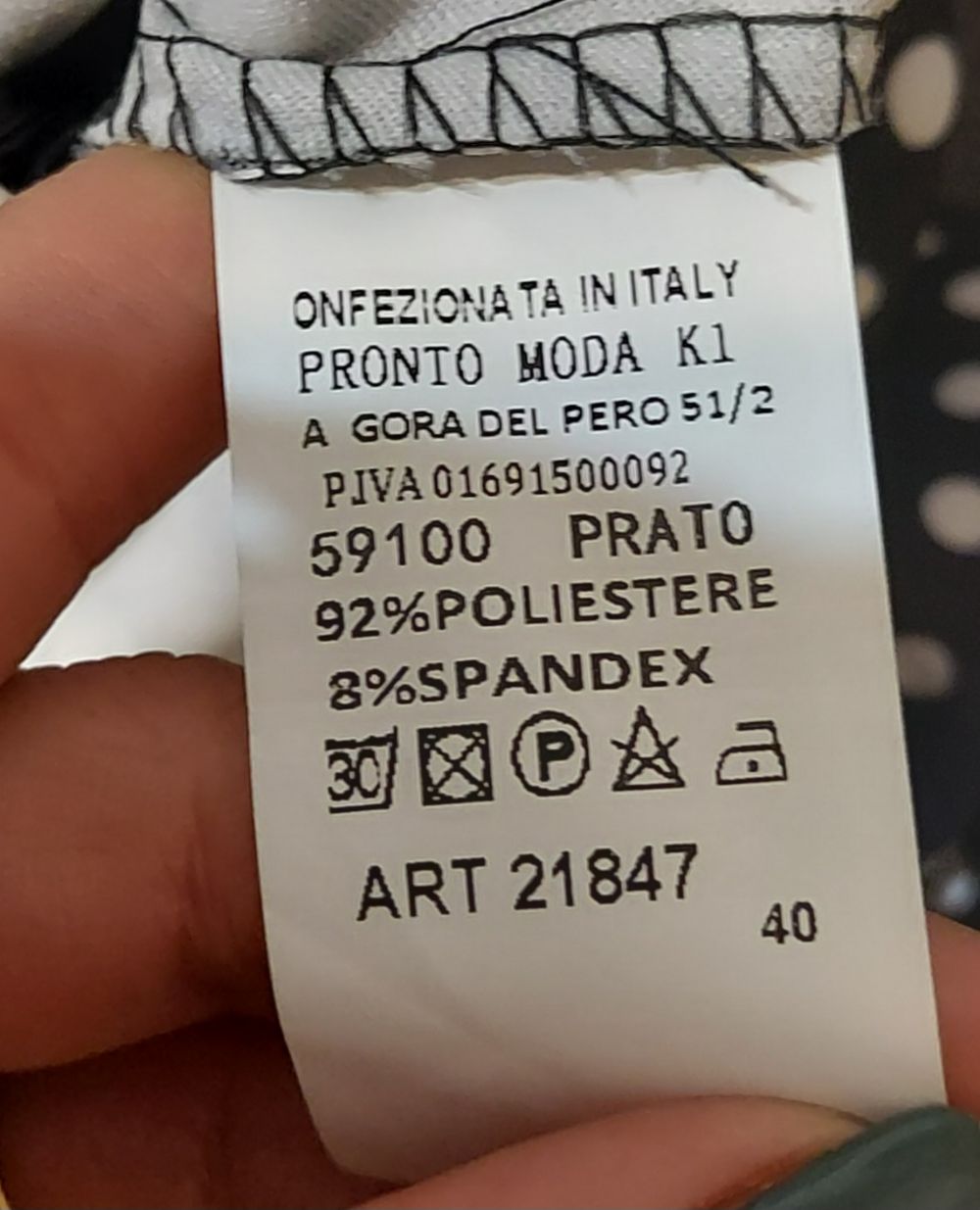 Non vedo taglia ma sul etichetta c'è un 40 sarà la taglia? Per me veste S