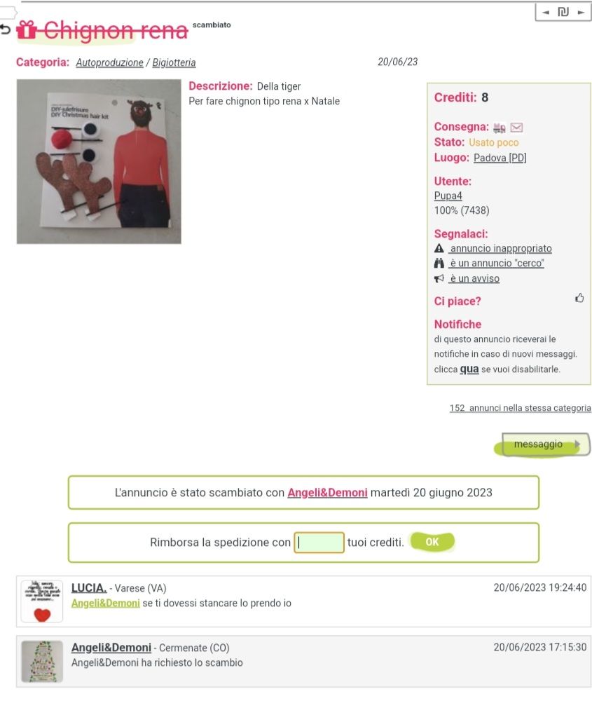 Il sito di baratto online asincrono per lo scambio, il riuso e il riutilizzo di oggetti usati, nonché banca del tempo.