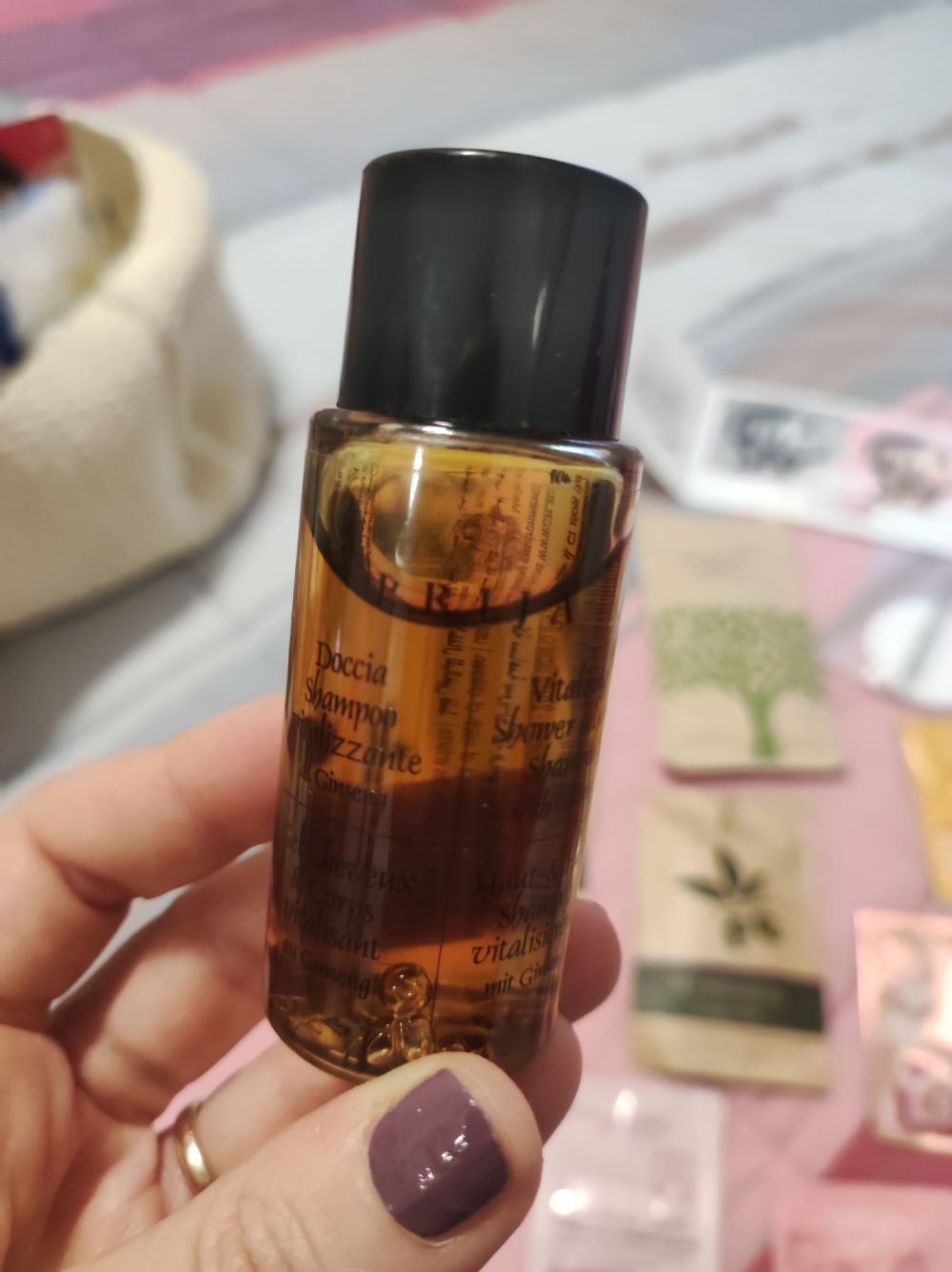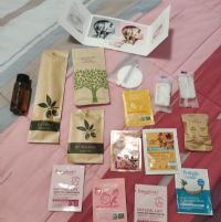 Descrizione:Lotto di 7 campioncini Bottega Verde, 3 saponette da 15 g, 3 Vanity kit, un set denti, due campioncini mod (vanilla e blush), una confezione di doccia schiuma vitalizzante al ginseng da 40 ml.