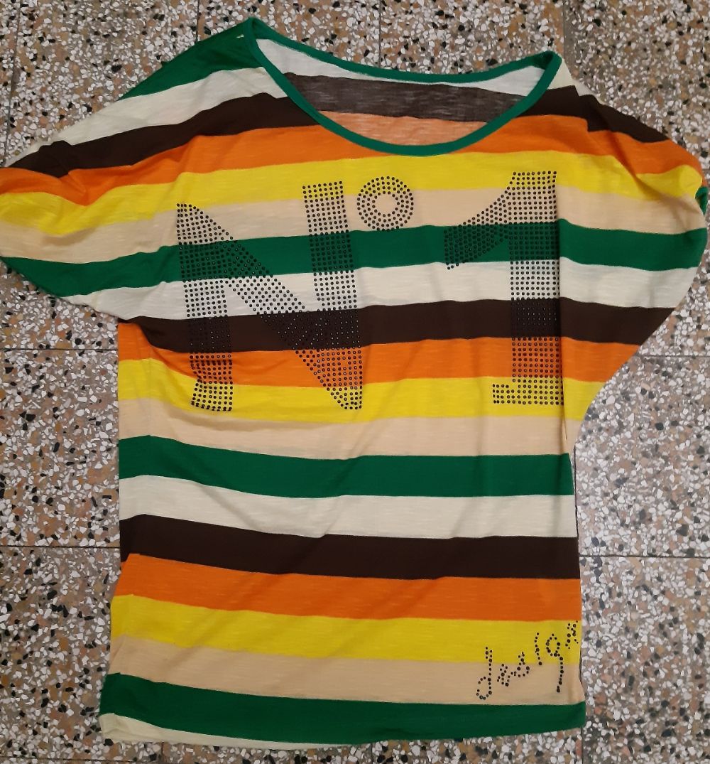 Descrizione:Ampia con borchie 75% viscosa 25% raion. Misure ascelle 50 cm, lunghezza 69 cm.