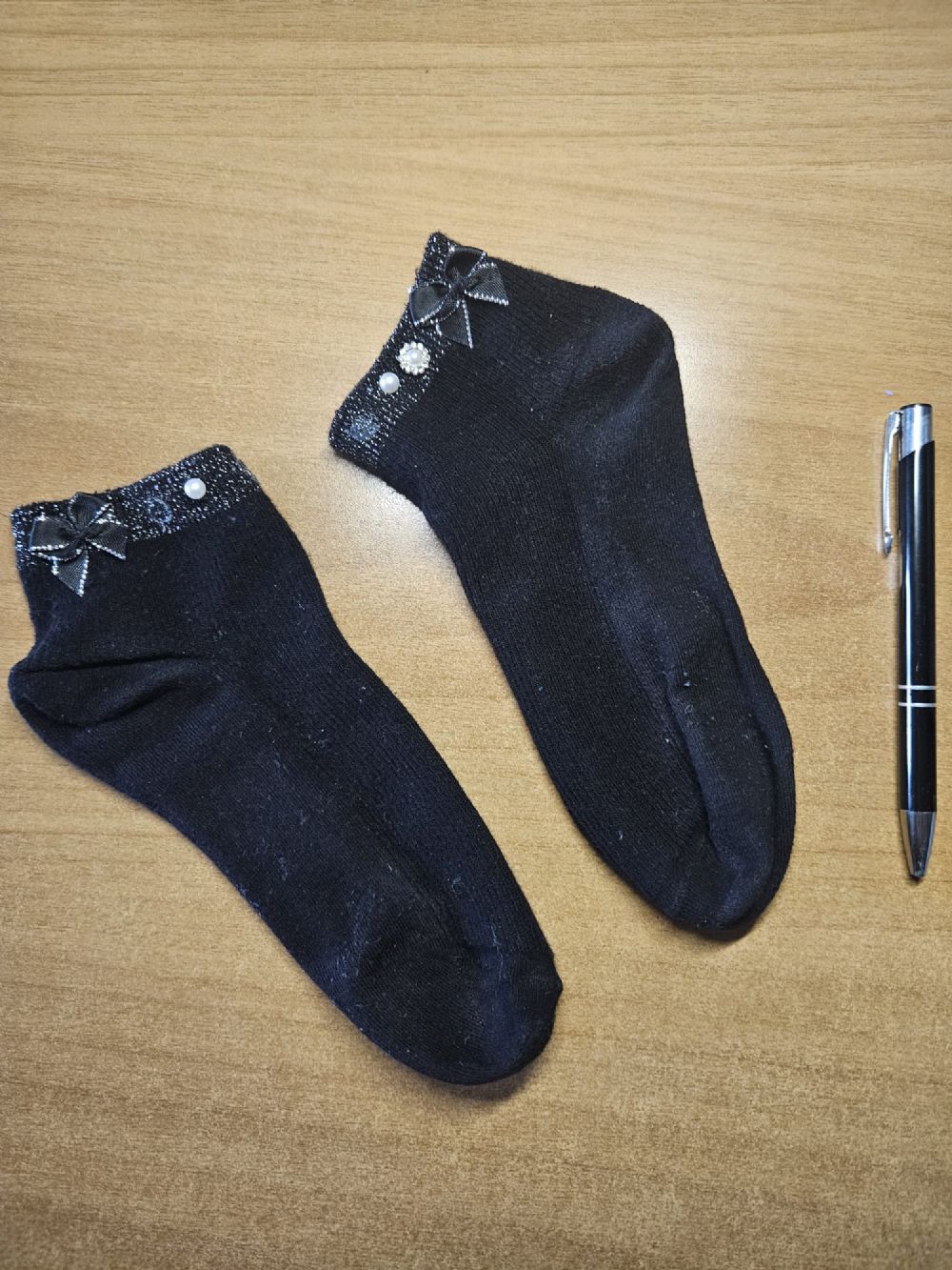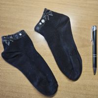 Calze corte nere con brillantini sul bordo e perline (alcune cadute), cedo a poco pe liberare
