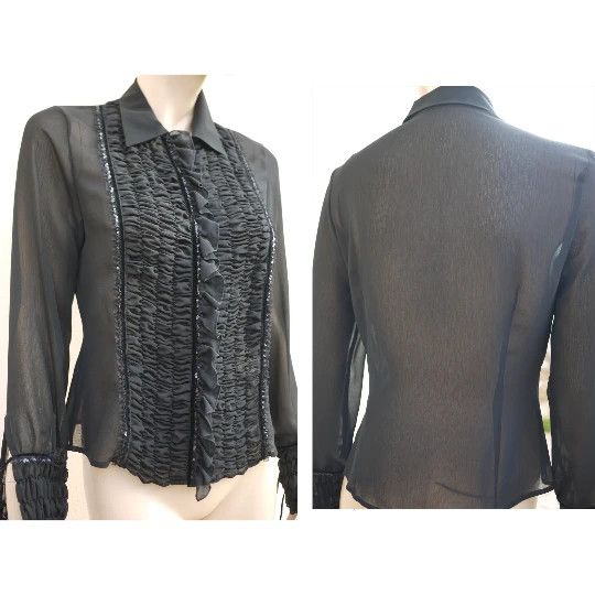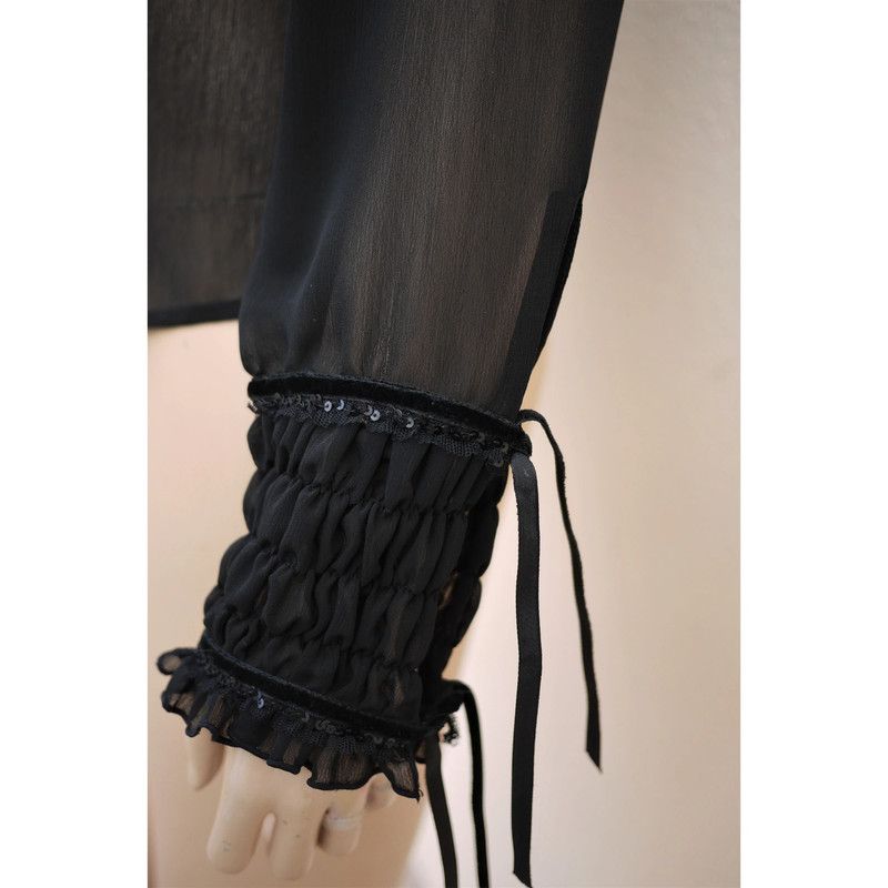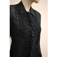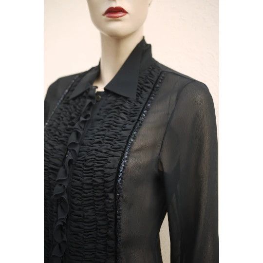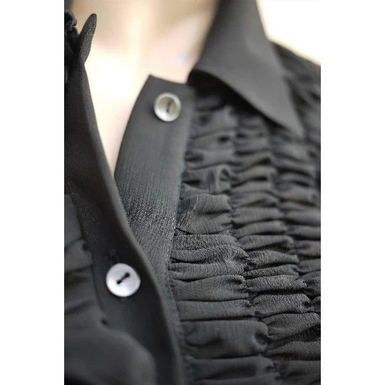 Descrizione:Camicetta chiffon di seta con rouches davanti e sui polsi, bottoni madreperla