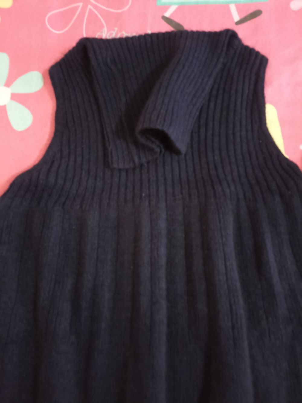 Descrizione:Maglione/vestitino dolcevita smanicato donna invernale tg L/46 in lana mohair acrilico. Ottime condizioni. Adatto anche a mamme di tg minore in dolce attesa perché non è aderente.