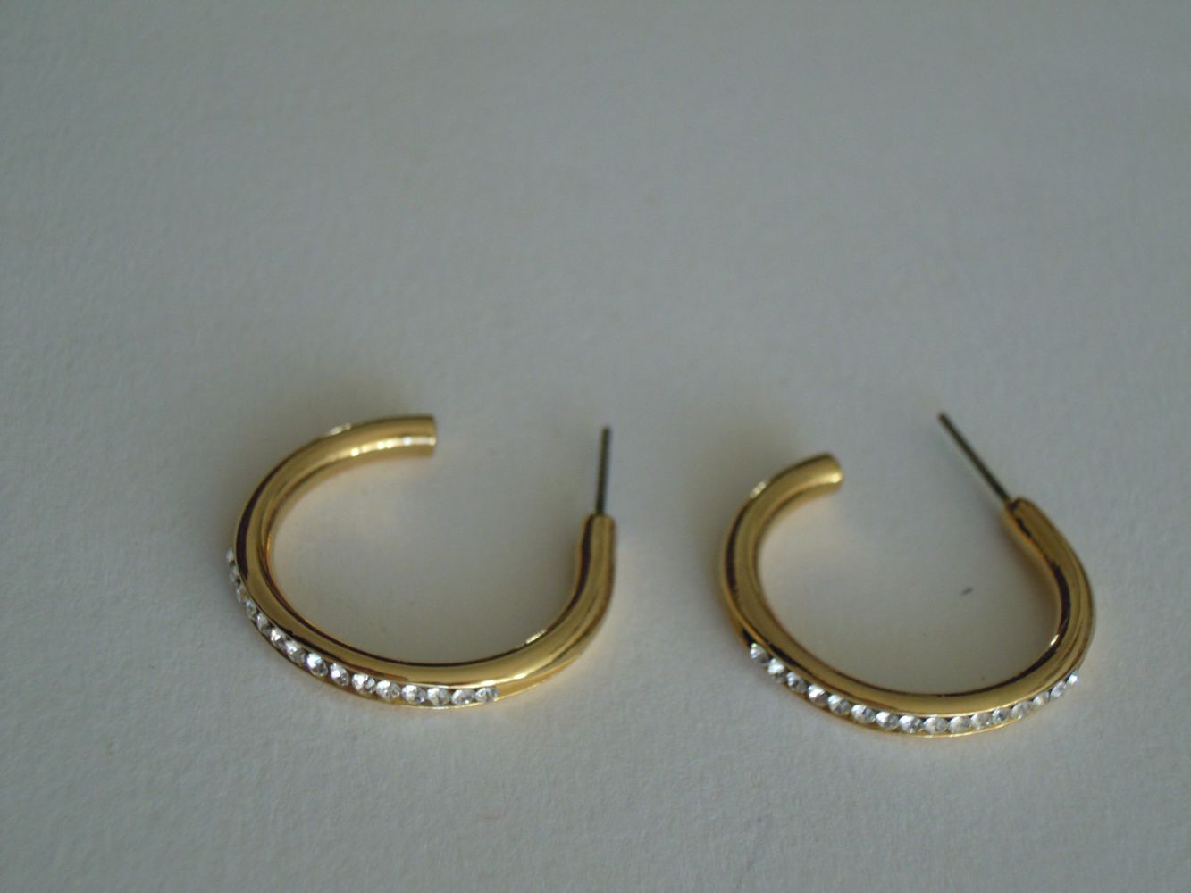 Descrizione:Orecchini con finti brillantini, a semicerchio, circa 2 cm di grandezza; ATTENZIONE non ho più i gommini da inserire dietro, dovete metterceli voi