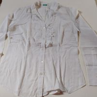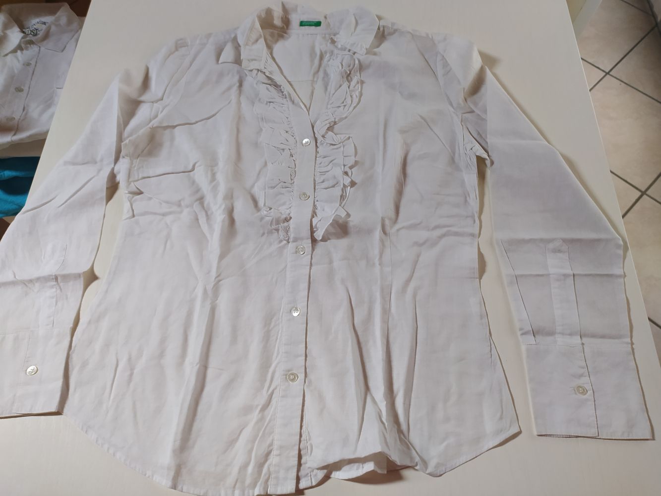 Camicia Benetton sciancrata con ruches spalle cm 40, ascelle cm 53, lunghezza cm 67, credo tg L, cotone.