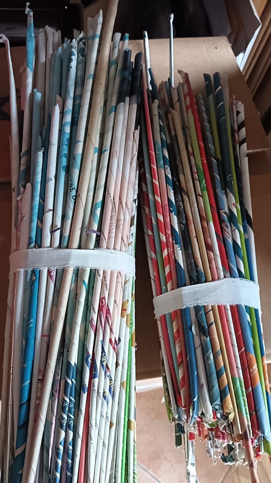 Descrizione:tant ecannucce di carta per fare lavoretti di intreccio ,diciamo che non sono tutte perfette ma si utilizzano tranquillamente sono varie misure di lunghezza.