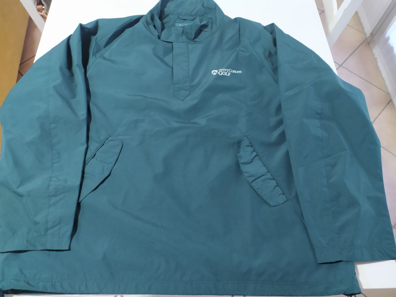 Giubbetto Henry Cotton''s tg XXXI di un bel verde bottiglia (in foto sembra più chiaro), 100% poliestere con rete interna ed elastico al fondo per stringerlo, ascelle cm 65, lunghezza cm 72.