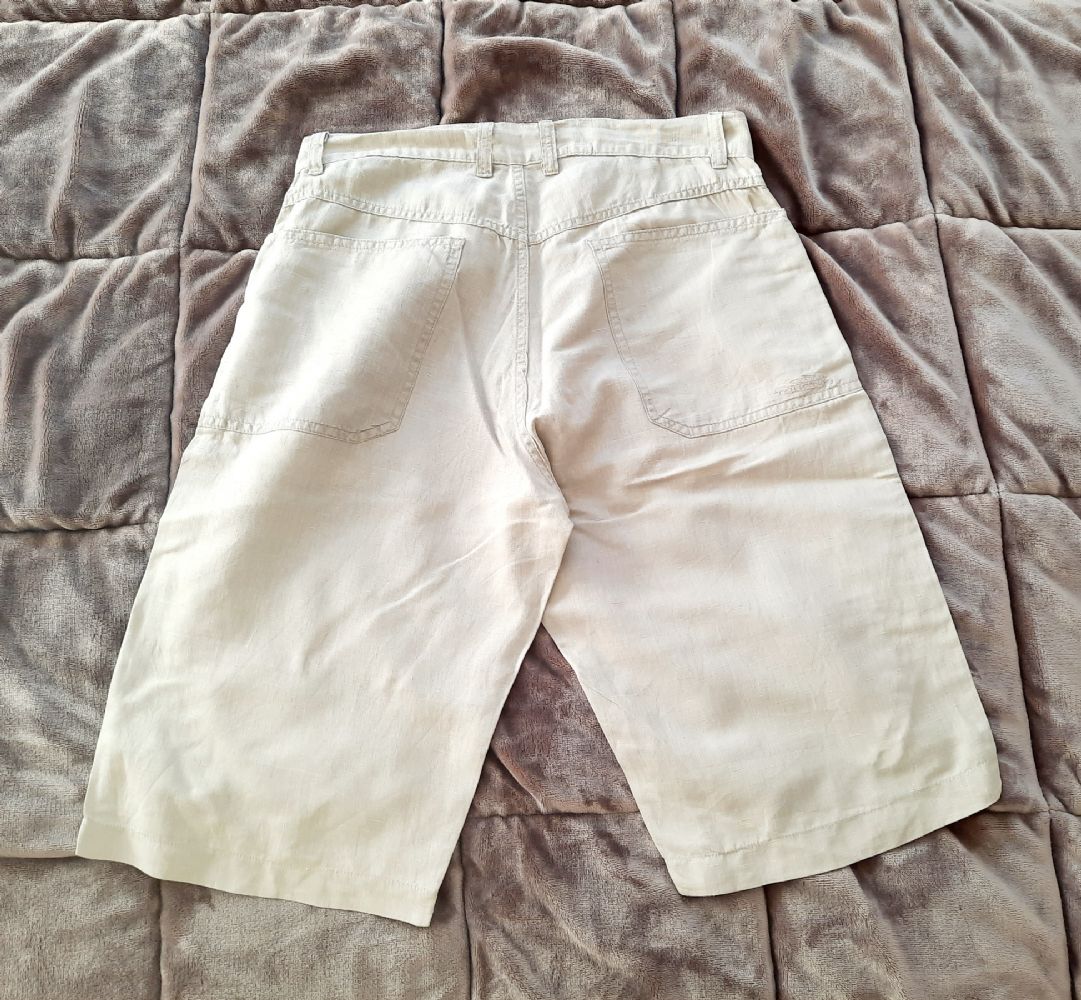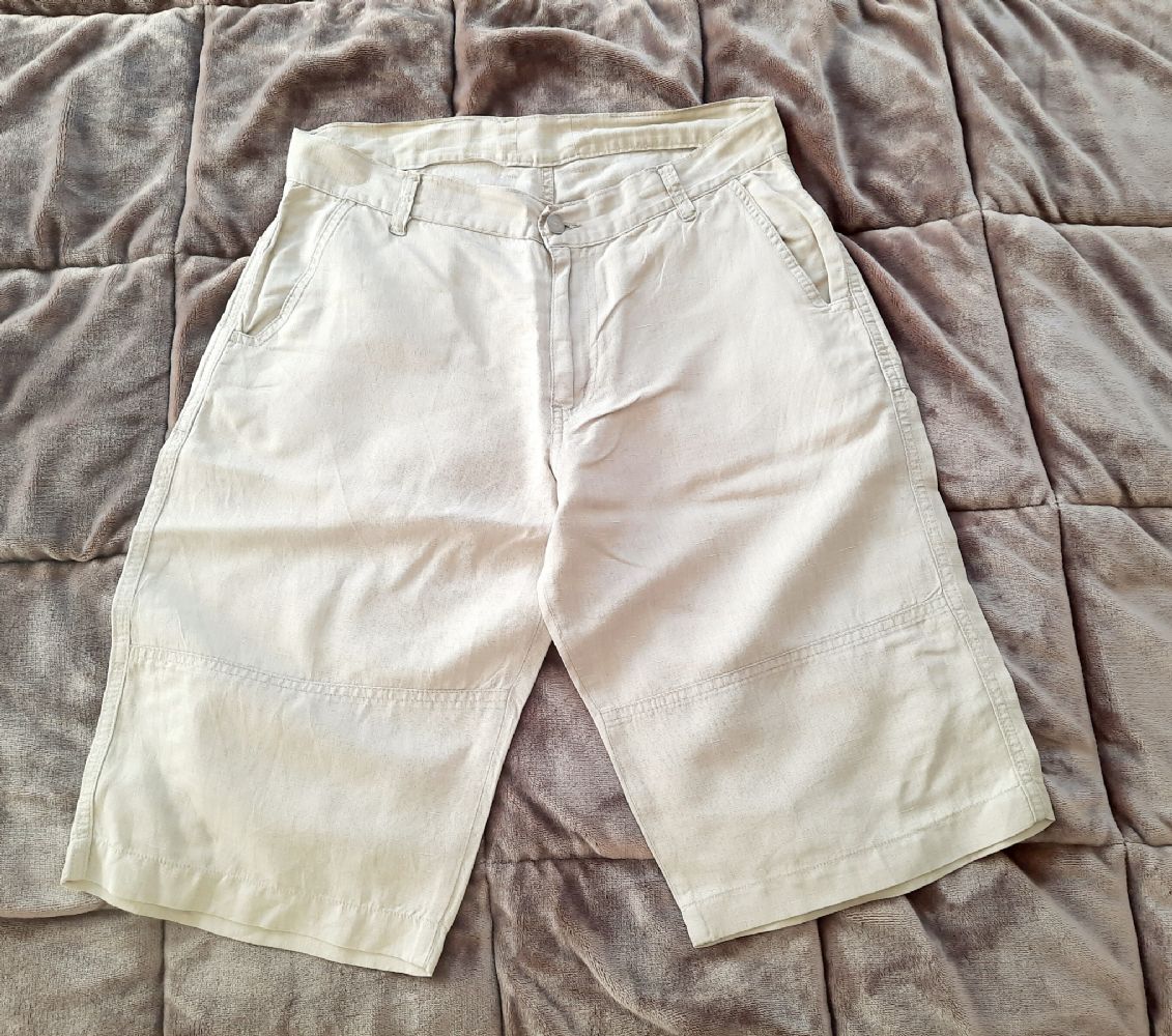 Descrizione:Pantaloni corti da uomo in tessuto leggero molto fresco, non c'e' composiziona ma potrebbere essere lino o cotone di colore sabbia.
