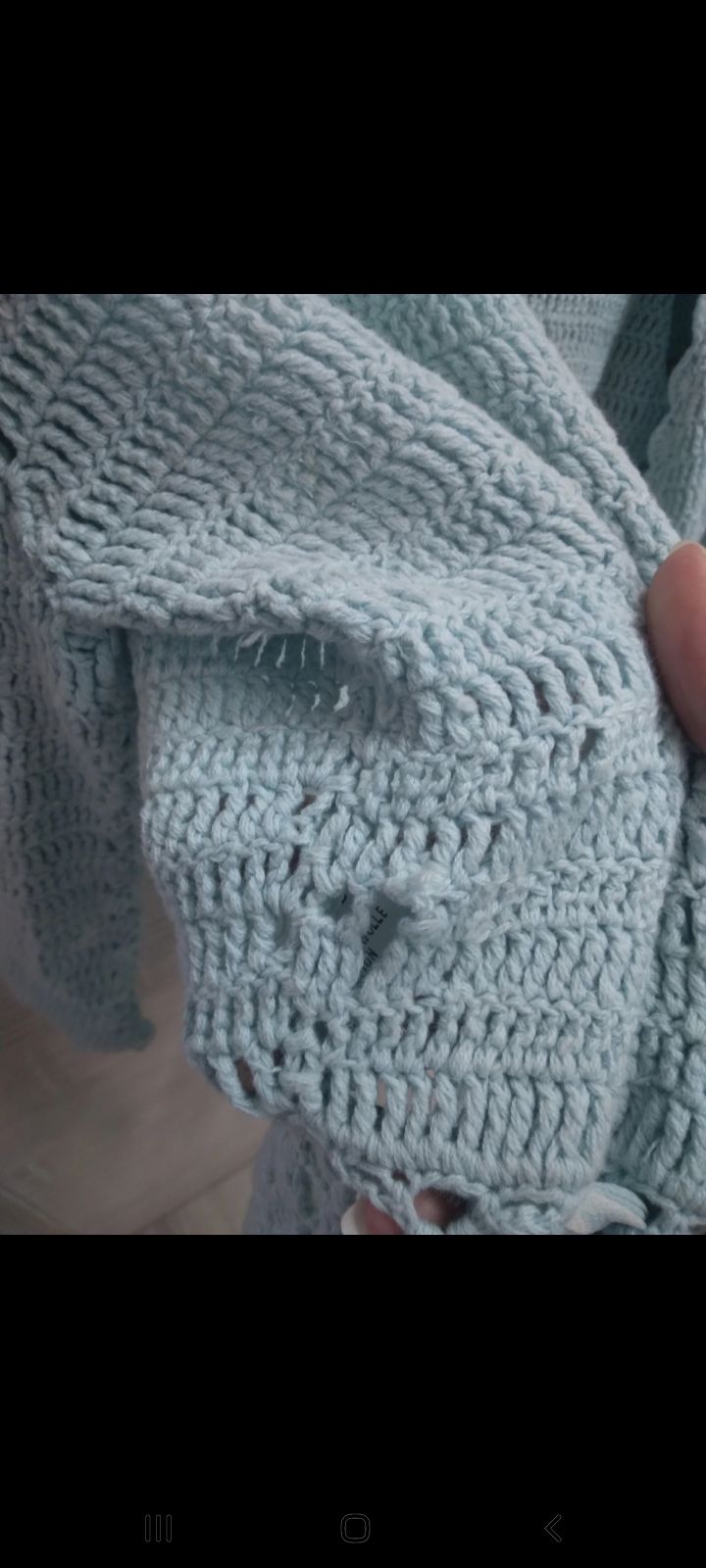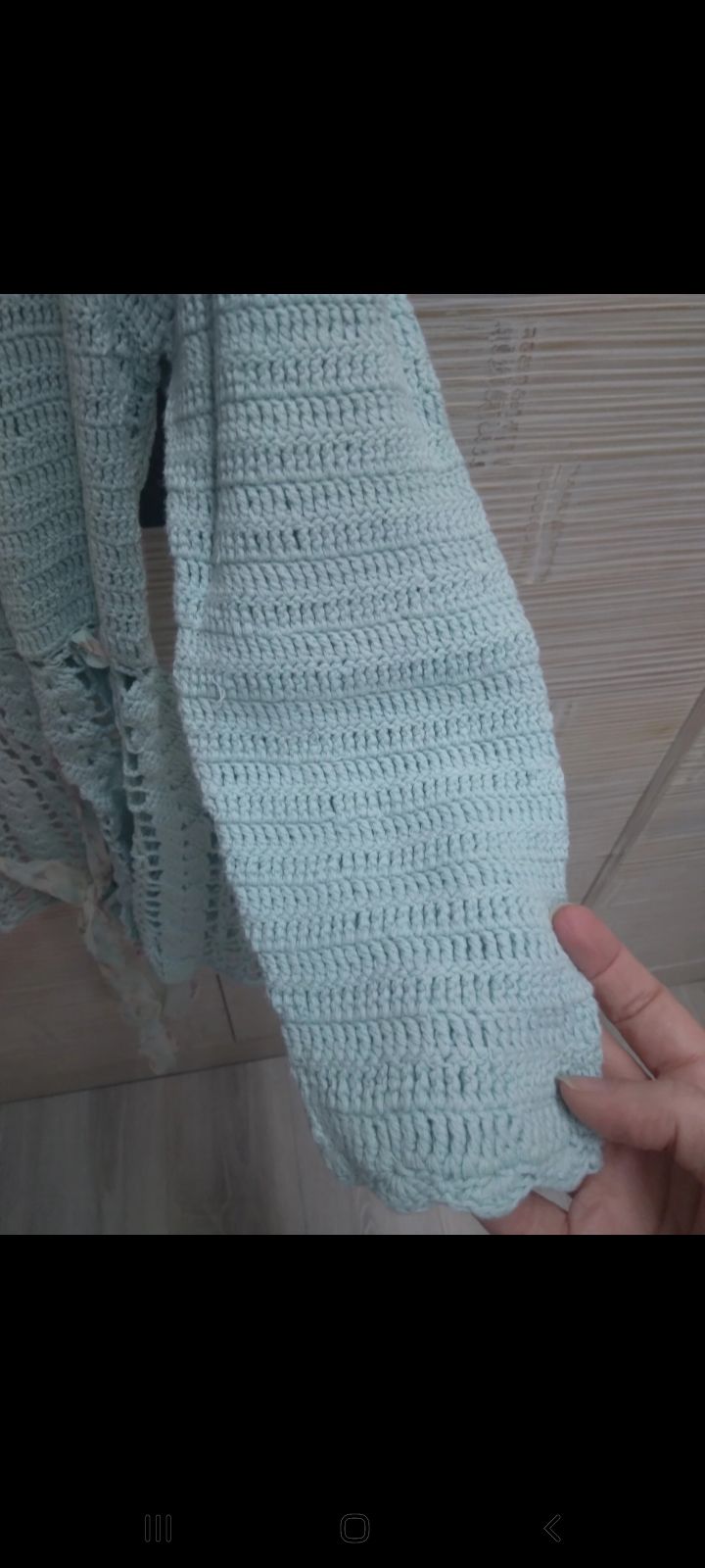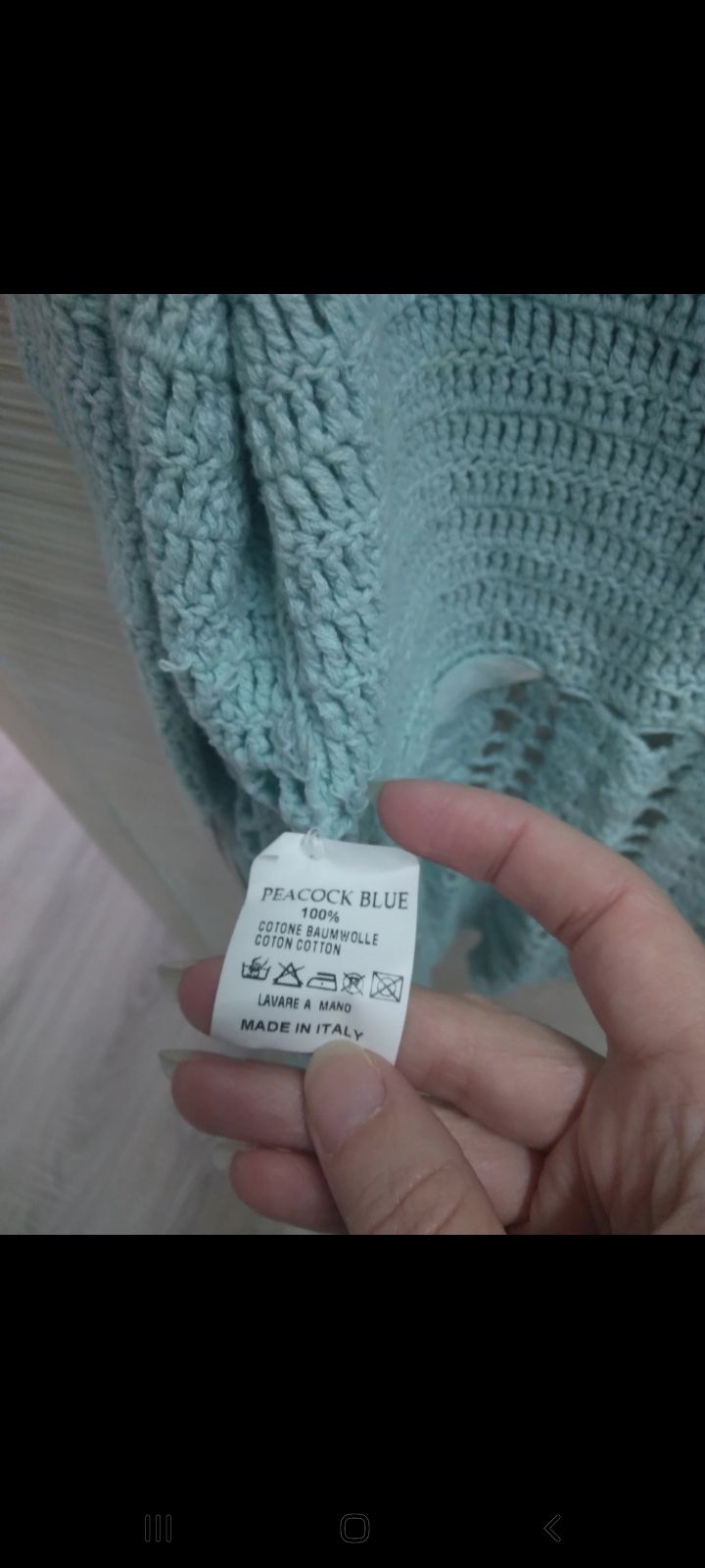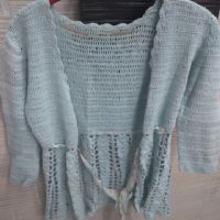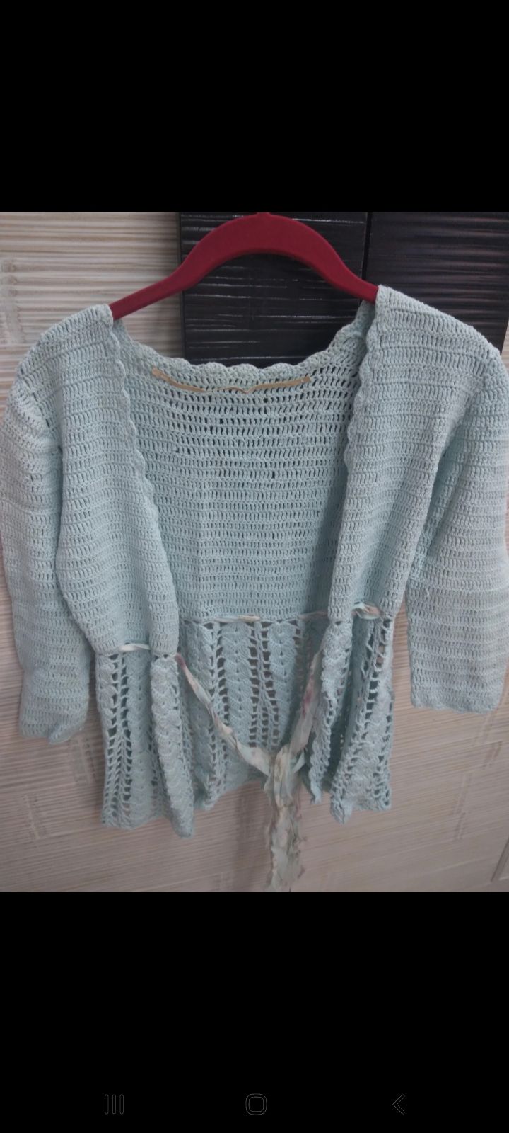 Descrizione:Maglia traforata 100% cotone. Maniche 3/4. Alcune maglie sono più larghe, non so se è un difetto. Colore verde acqua. Cinturina. Adatta per le serate estive. Tg. S. Spedisco in collettiva Valdarno-Firenze