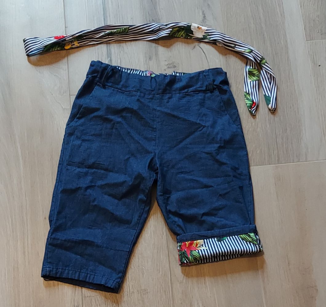 Descrizione:Pantaloni con cintura il risvolto si può tenere giù e arriva sotto ginochio e se si tira su al ginocchio