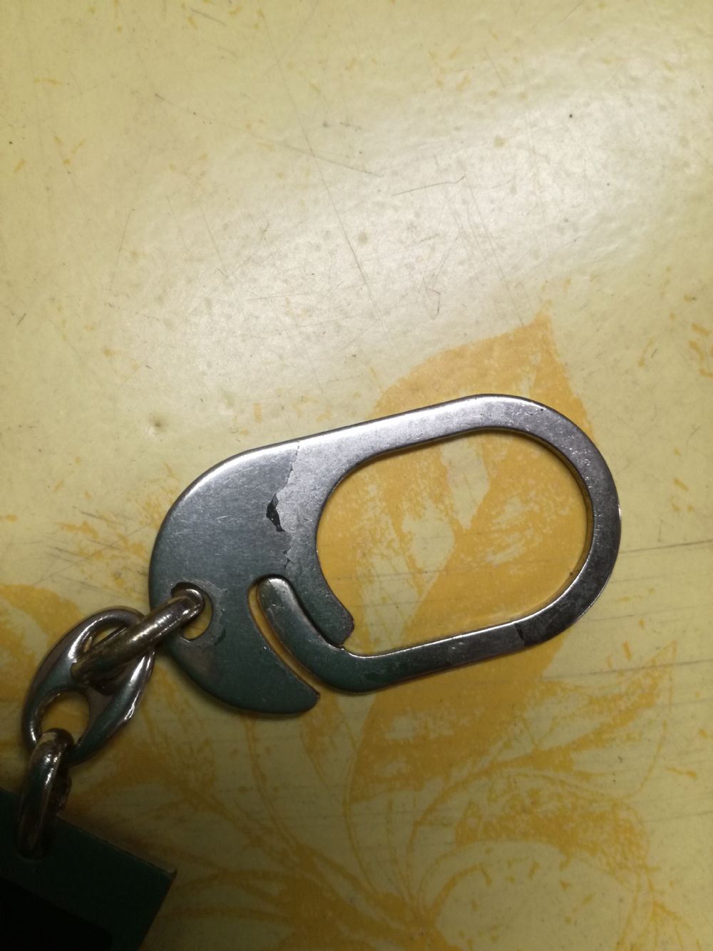 è presente una spelatura sulla parte del gancio ma dato che il materiale è una lega non si è arrugginito