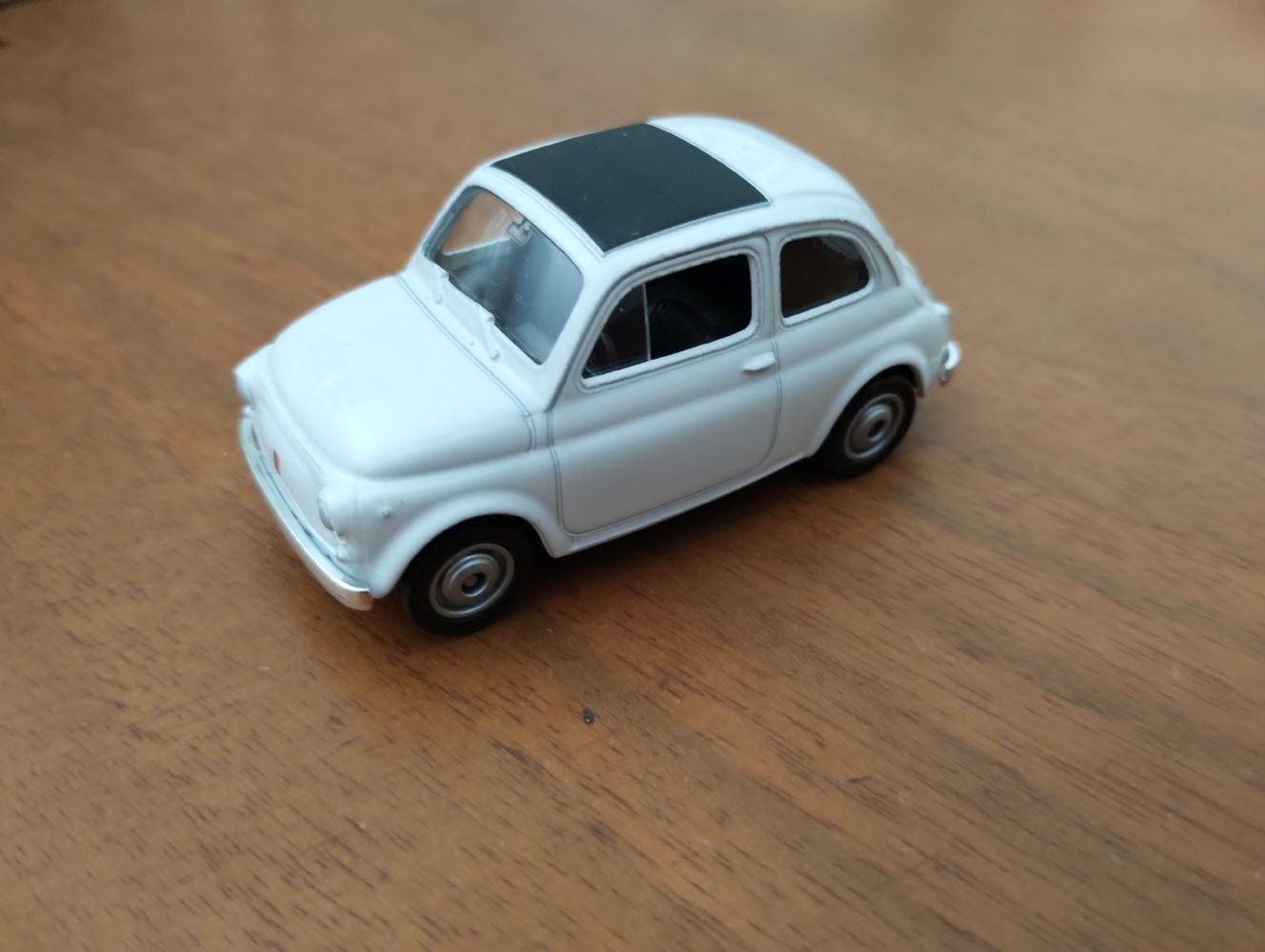 Descrizione:Modellino di fiat 500 bianca nuova senza confezione più grande della precedente, misura 6.5 cm