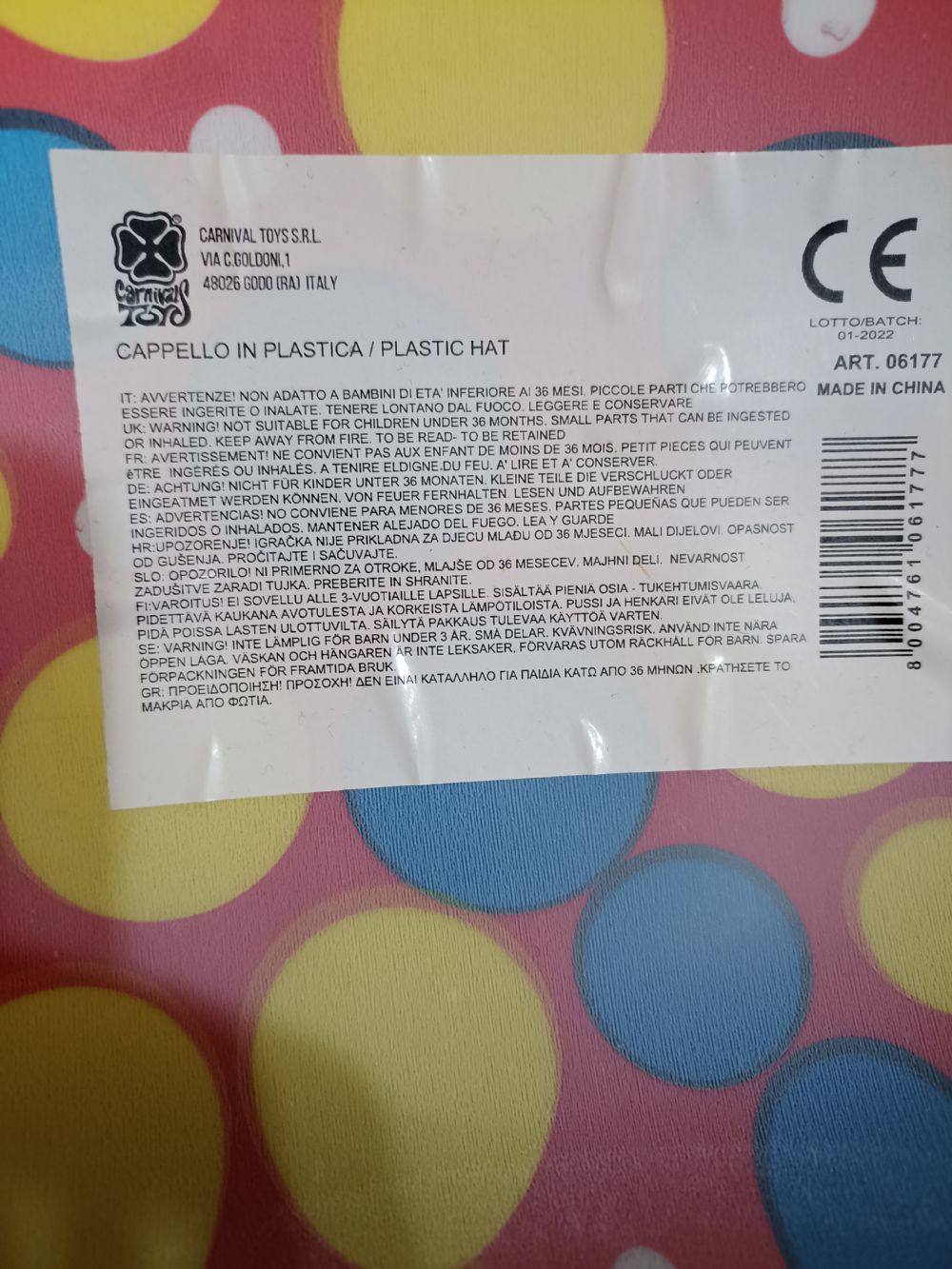 Descrizione:Nuovo mai usato. Misura unica. In plastica per carnevale, giochi o altri travestimenti.