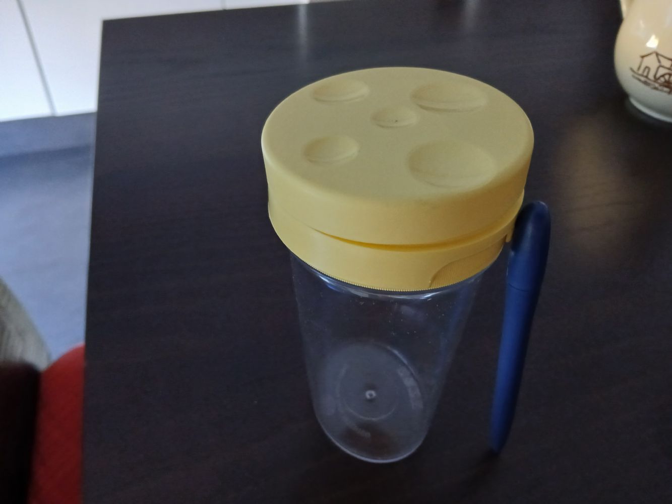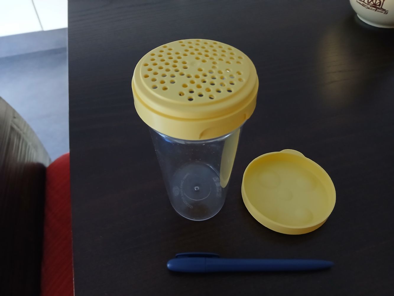Ciao è un contenitore per formaggio grattuggiato,simil tupperware