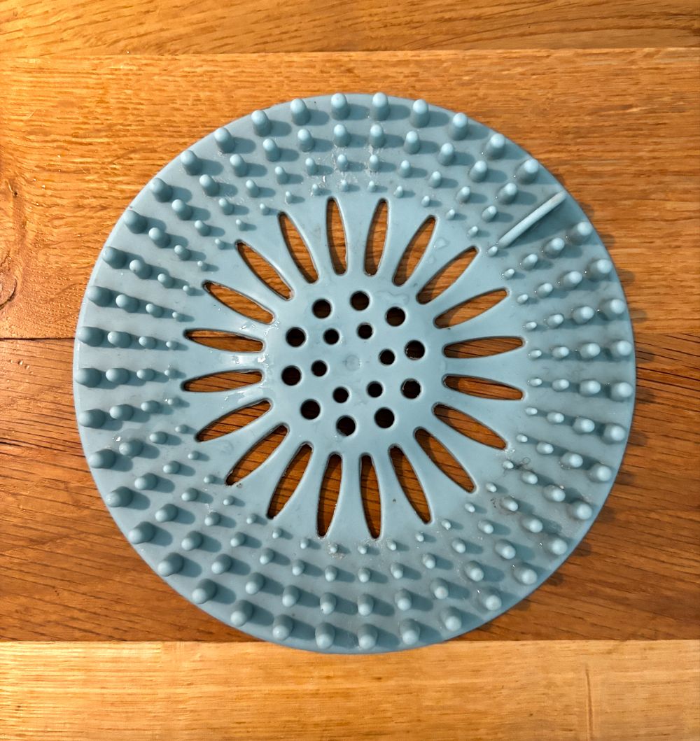 Tappo multi uso lavandino o doccia largo circa 15 cm che serve per proteggere i lavelli o la doccia da capelli o altro e si posizione sopra lo scarico installato.