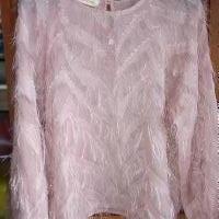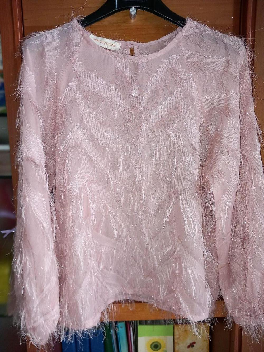 Top o maglia elegante in poliestere, con piccole frange leggerissime. Perfetto con pantaloni o gonna neri. Scambio perché purtroppo non ho occasione di indossarlo ma è davvero bello. Taglia M o 42