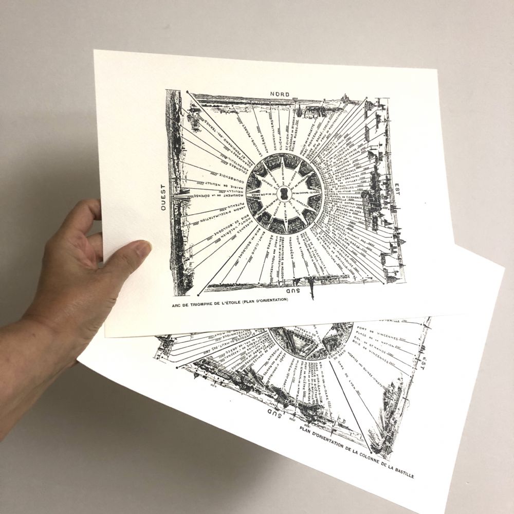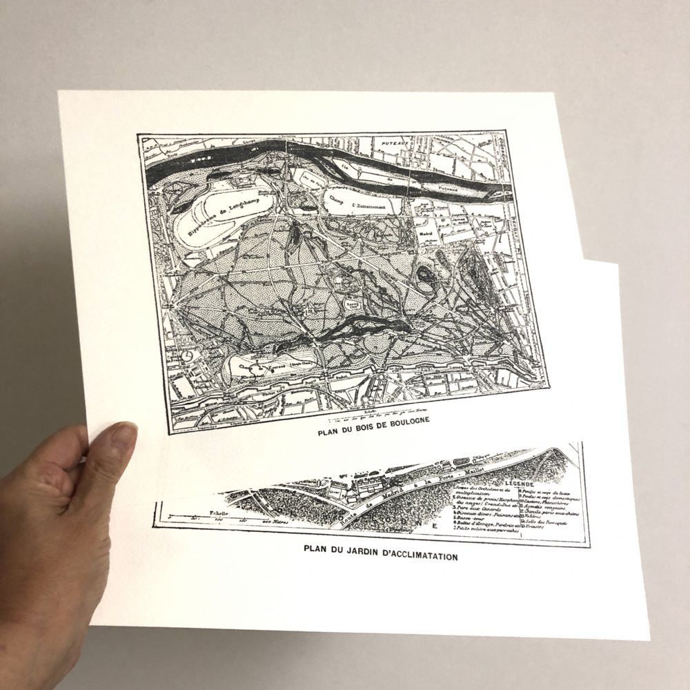 non stampati da un lato, dall’altro mappe e piantine di Parigi inizio 1900 ( vedere foto). giardini, parti di Parigi, mappe radiali. Sul retro hanno una scritta a matita non grande