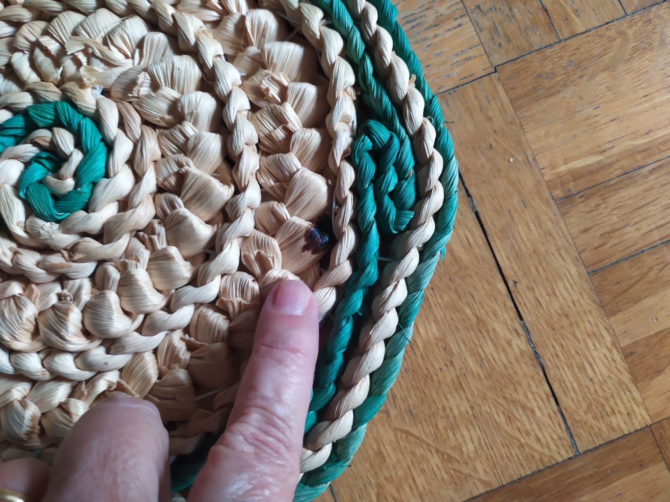 Ha una piccola macchia e in alcuni punti inizia ad indebolirsi ma svolge ancora egregiamente il suo lavoro. Diametro 24 cm