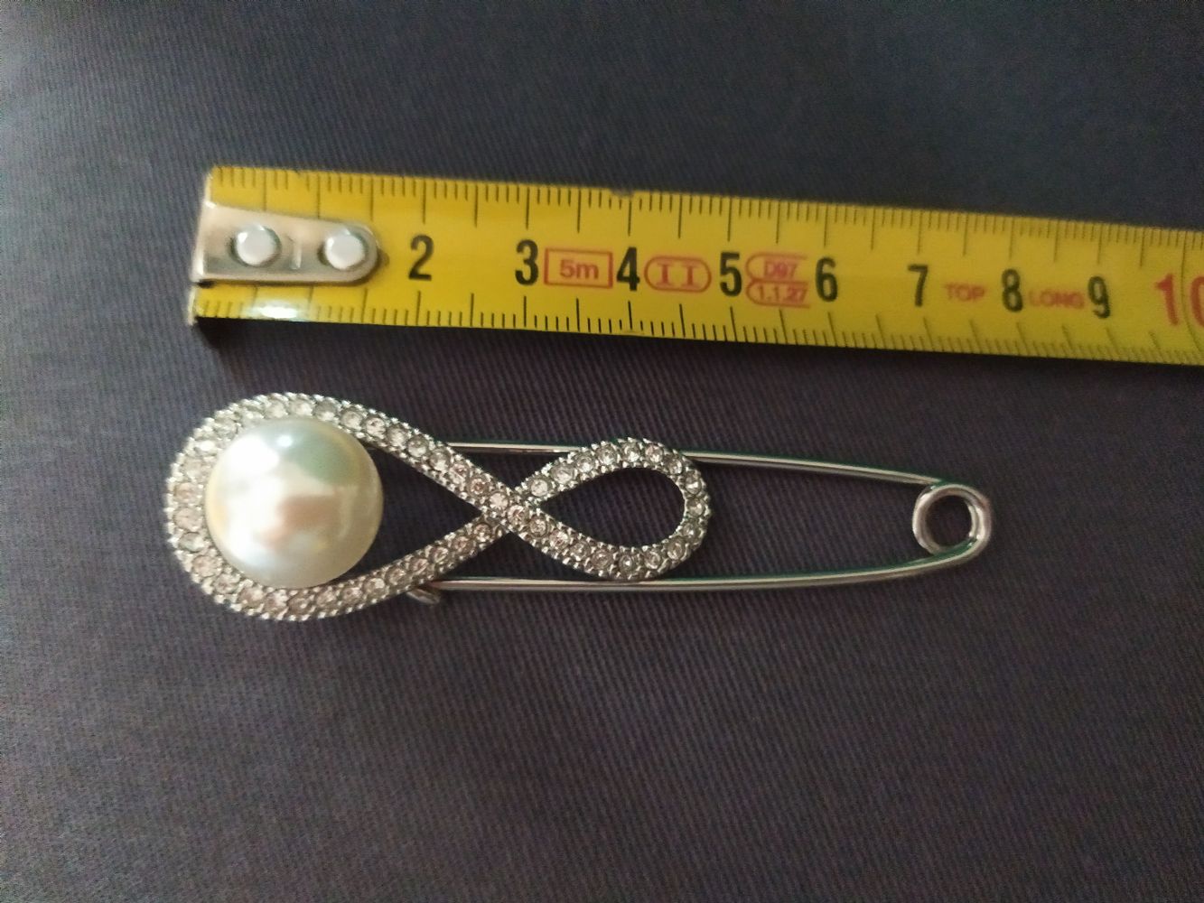 Descrizione:Spillone con perla (finta) e brillantini, ci sono tutti