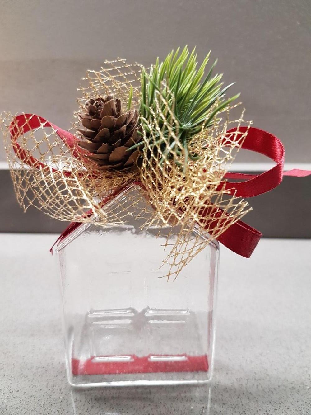 Vasetto in vetro con tappo di sughero natalizio portabonbon altezza 10 cm circa profondo 4 cm