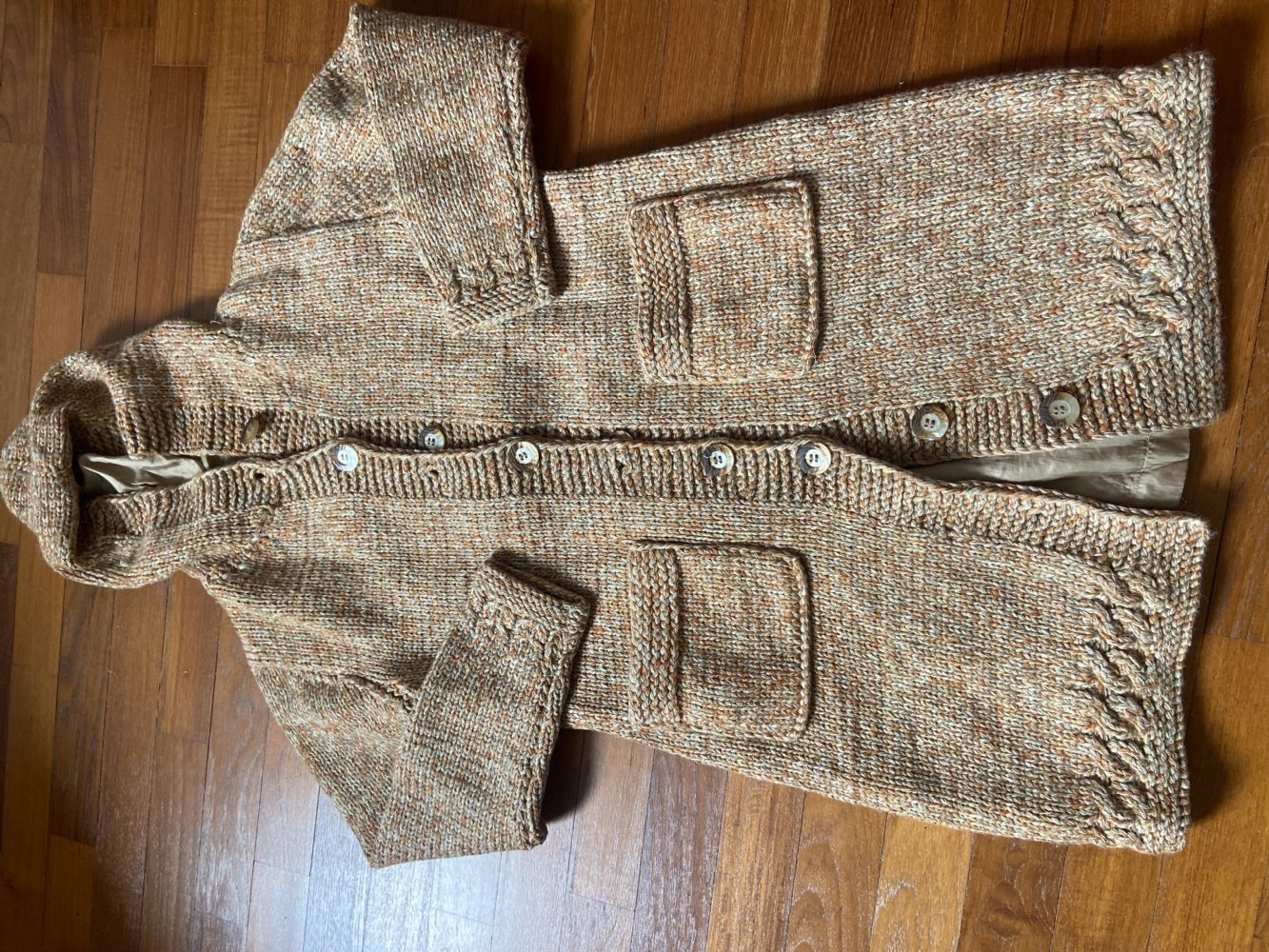 Cappotto in pura lana cucito interamente a mano interamente foderato fatto molto bene veste una taglia M è lungo centimetri 88 tra ascella e ascella misura centimetri 50 sono stati applicati dei bottoni di qualità pagati tanto a due tasche frontali e molto caldo e comodo