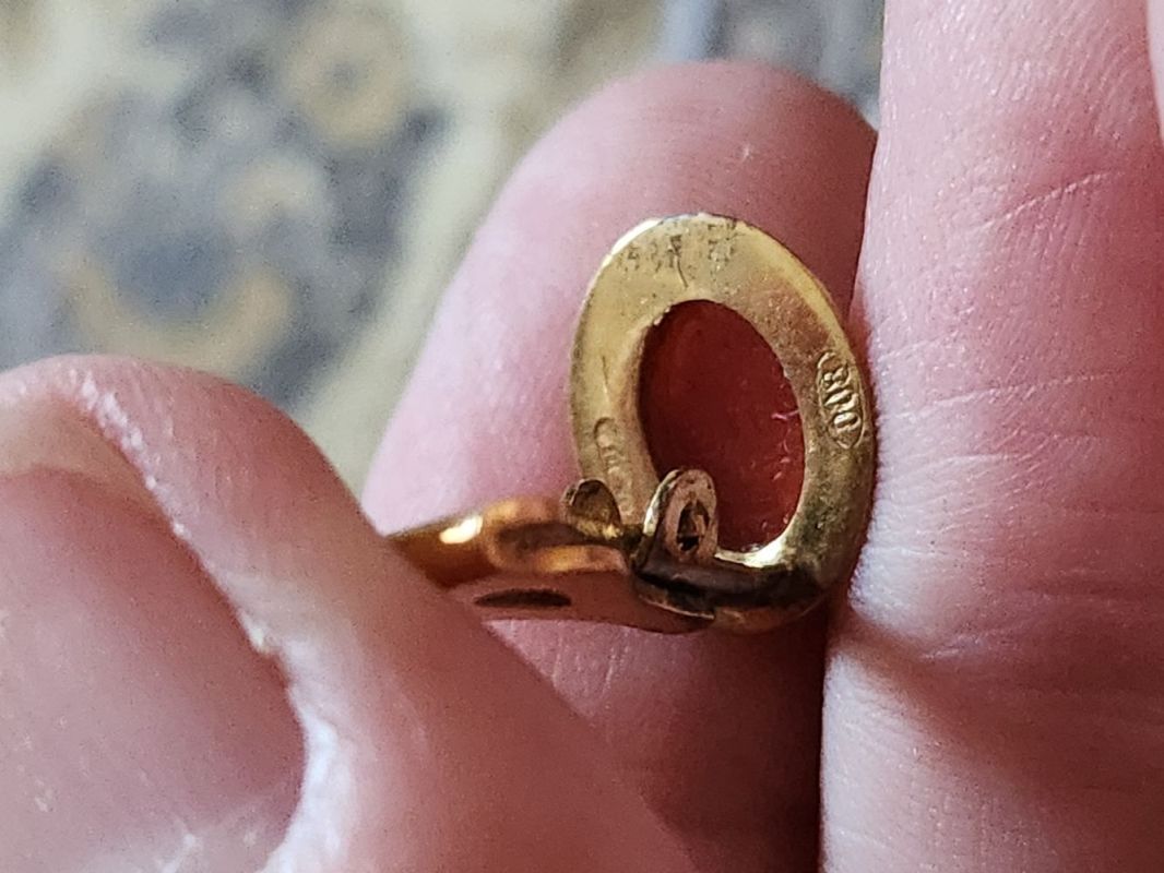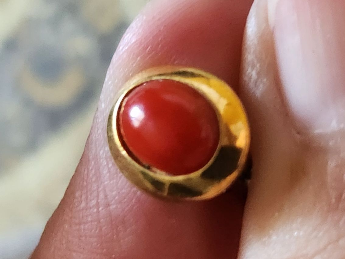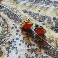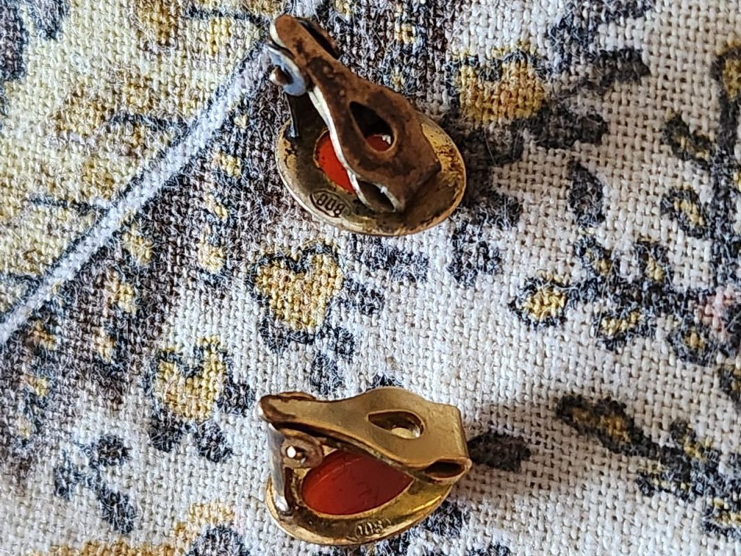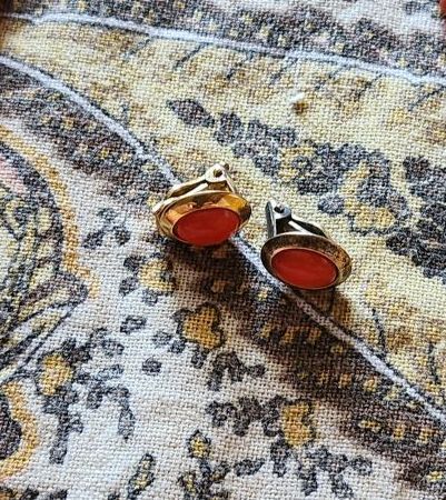 Orecchini a clip in argento dorato e corallo sardo. Uno è da lucidare.