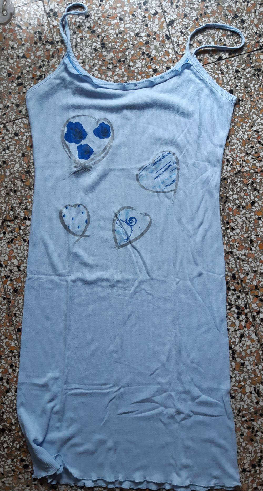 Descrizione:50% viscosa 50% poliestere. Misure ascelle 36 cm, lunghezza 80 cm. Ha qualche pallino.