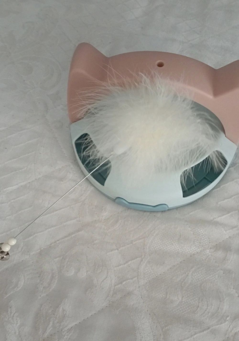 Descrizione:Gioco per gatti in plastica con pennacchio flessibile e due palline con sonaglio all'Interno. usato pochissimo e poi tenuto li a prendere polvere, spero che a qualcuno dei vostri mici piaccia di più xD