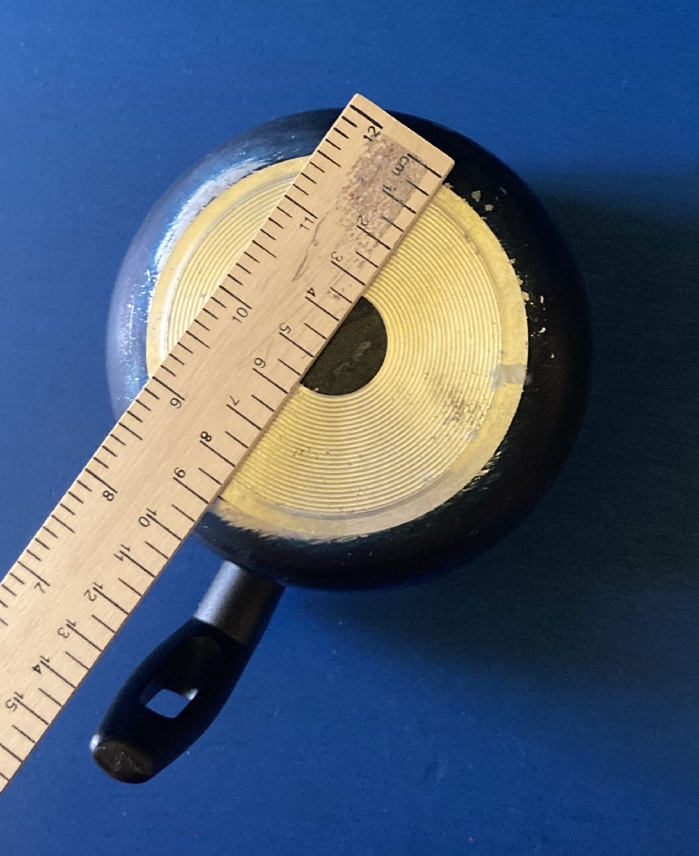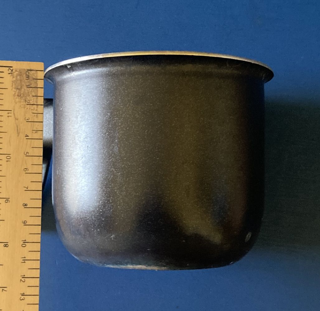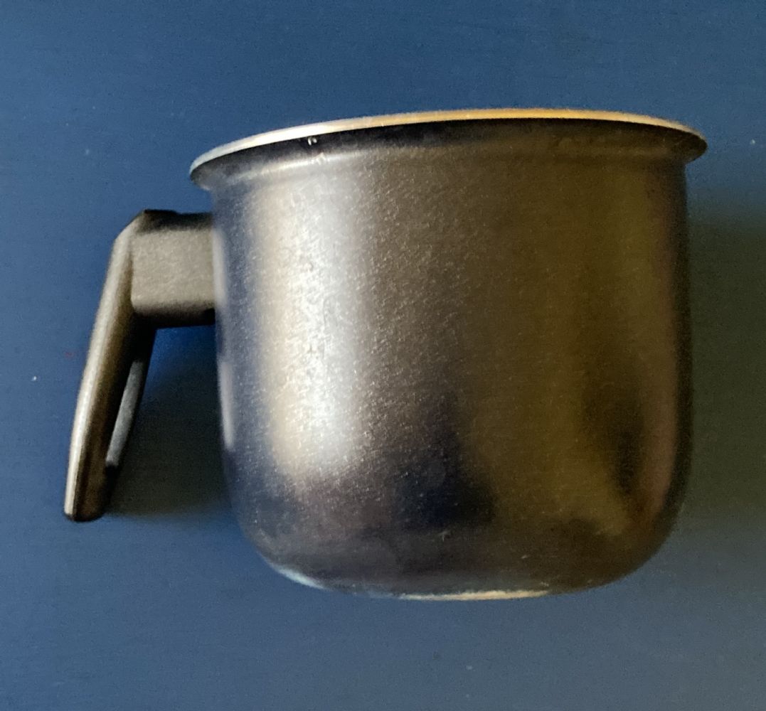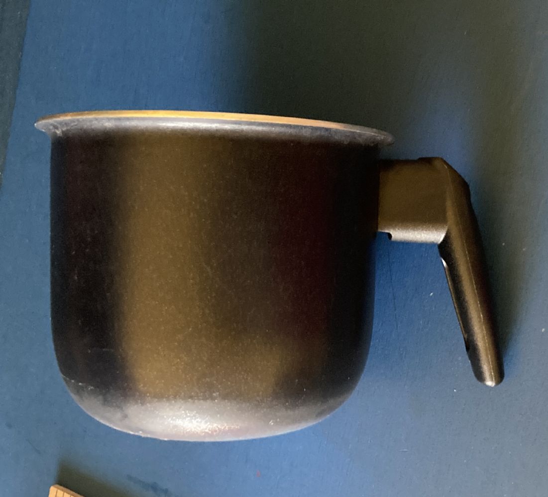 Bollitore in alluminio, senza coperchio, con manico in plastica.