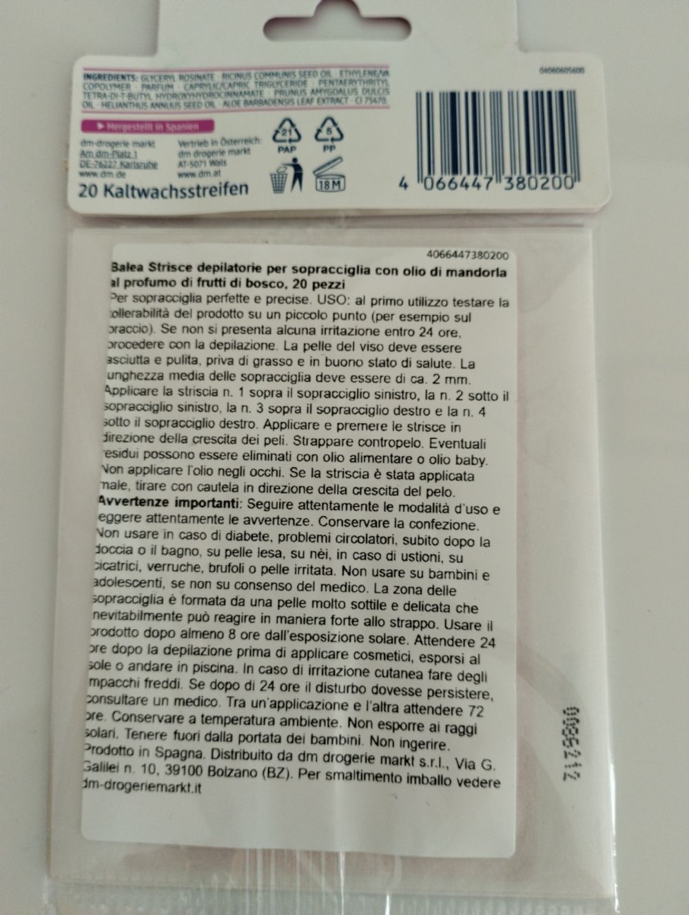 Descrizione:Strisce depilatorie per sopracciglia, 20 pezzi, nuove sigillate.