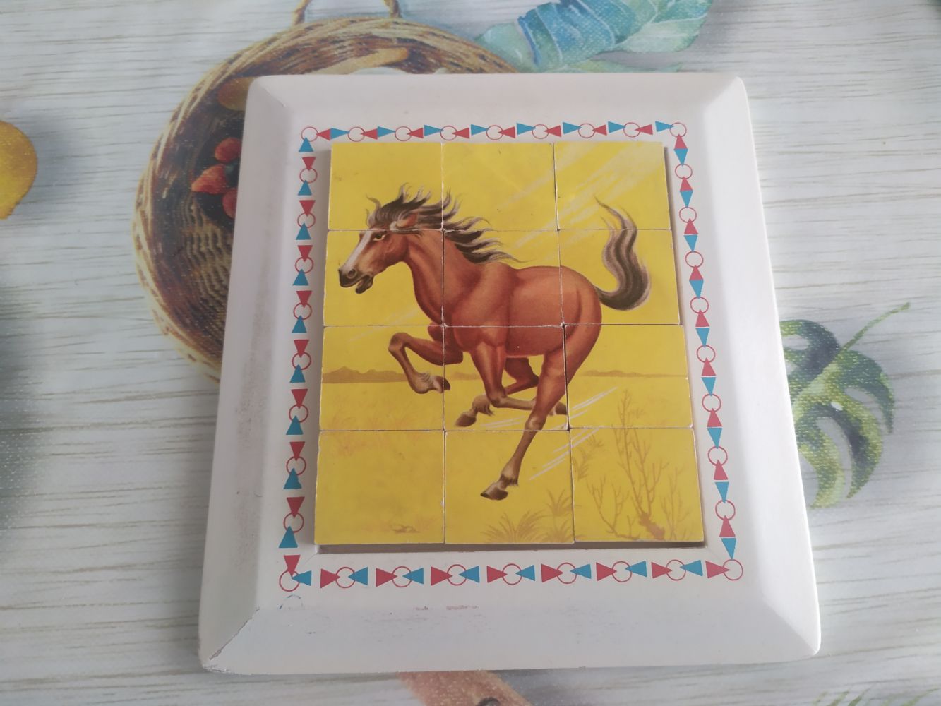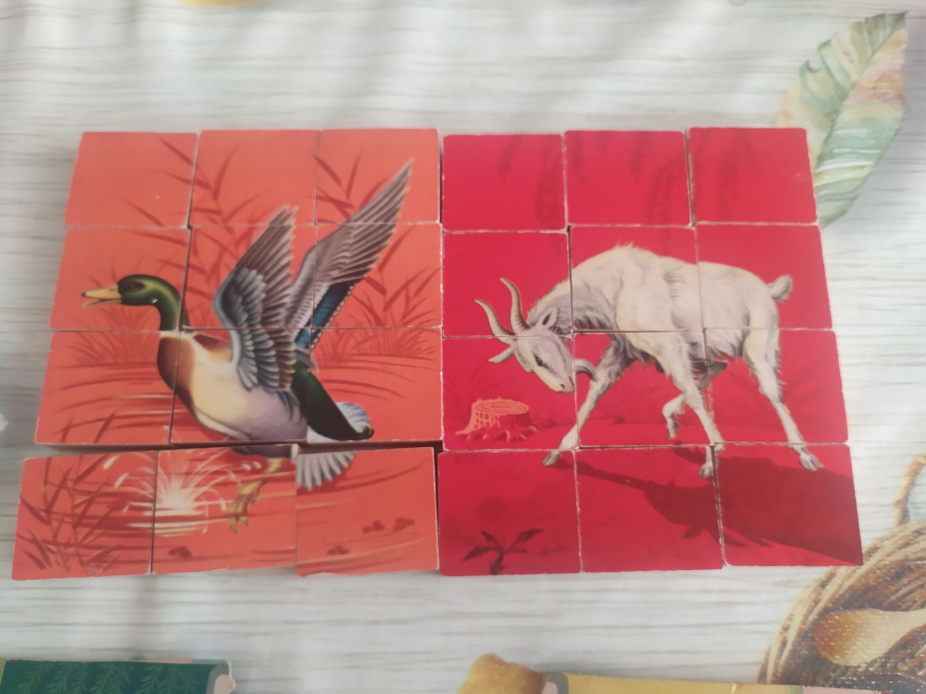 Descrizione:Puzzle a cubetti in legno con 6 animali diversi da comporre in una cornice sempre di legno. Ha 60 anni :) attenzione: i criteri di sicurezza dell'epoca erano diversi da quelli di oggi, quindi secondo me non è adattissimo per bambini molto piccoli perché i pezzi hanno gli spigoli