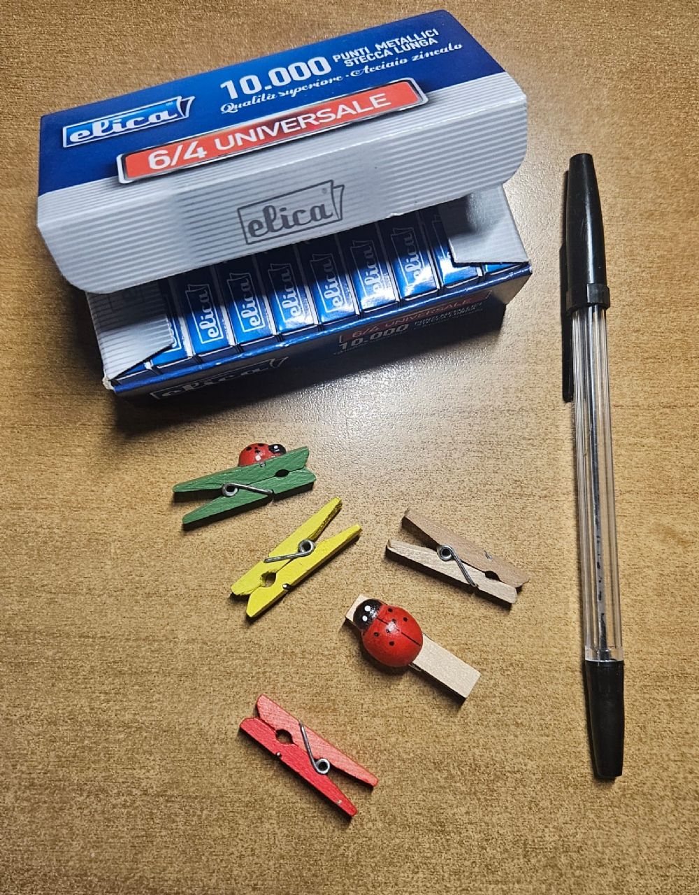 punti cucitrice + mollette cancelleria