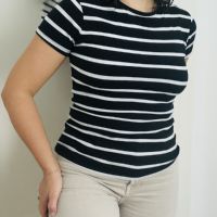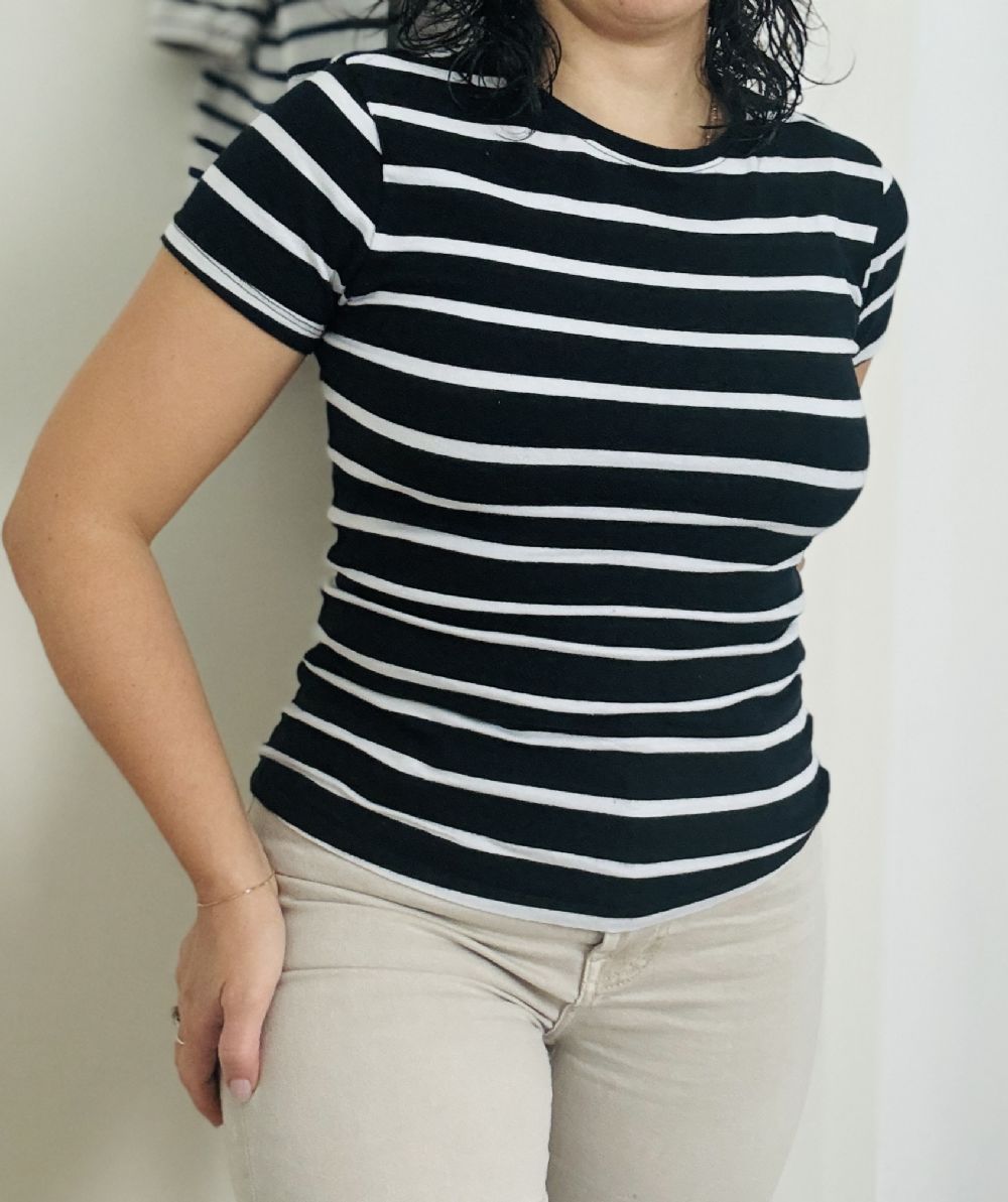 Descrizione:T-shirt in cotone elasticizzato marca Primark tg s colore bianco e nero
