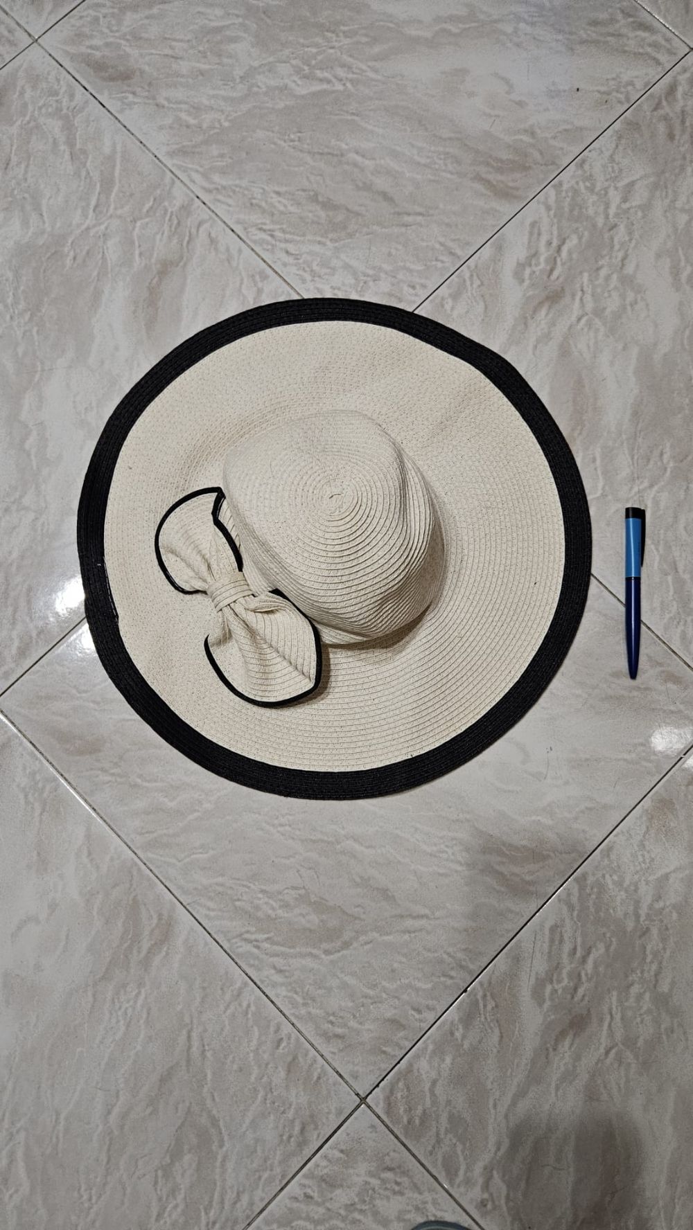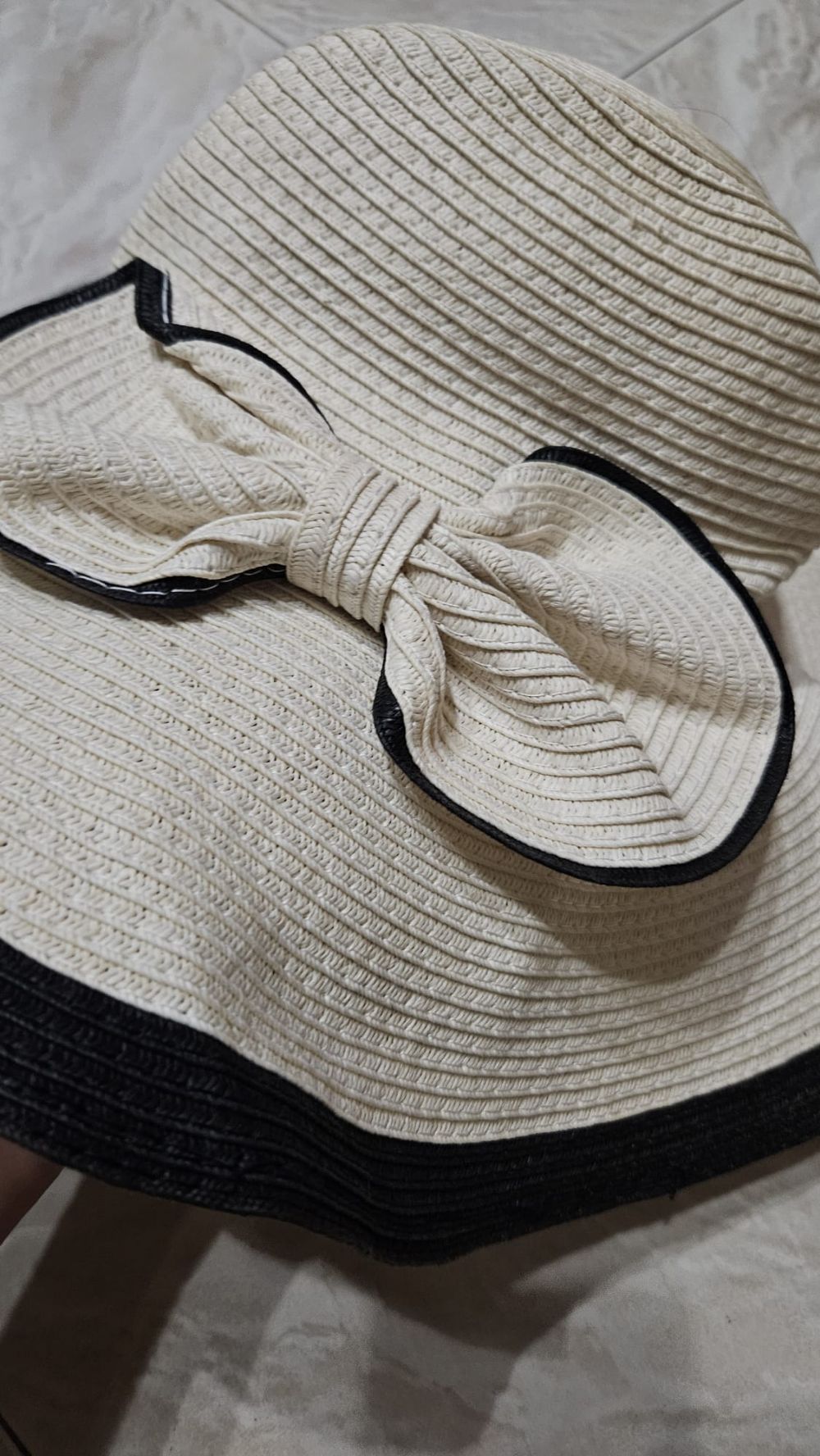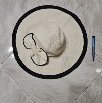Cappello bianco e blu con fiocco estivo, come nuovo