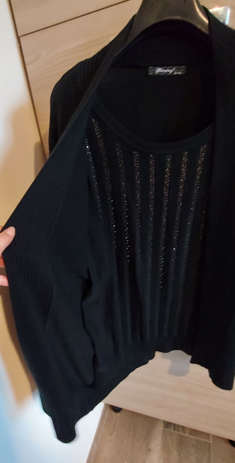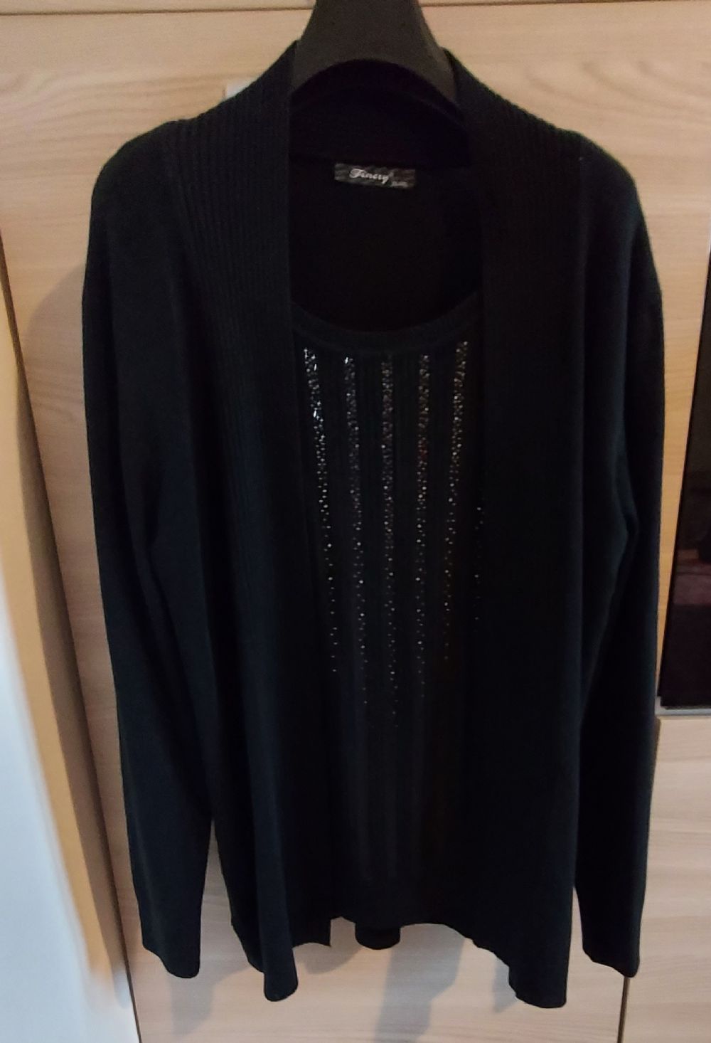 Sopra sembra che abbia un cardigan e sotto una maglia invece e una cosa unica cucita asieme.