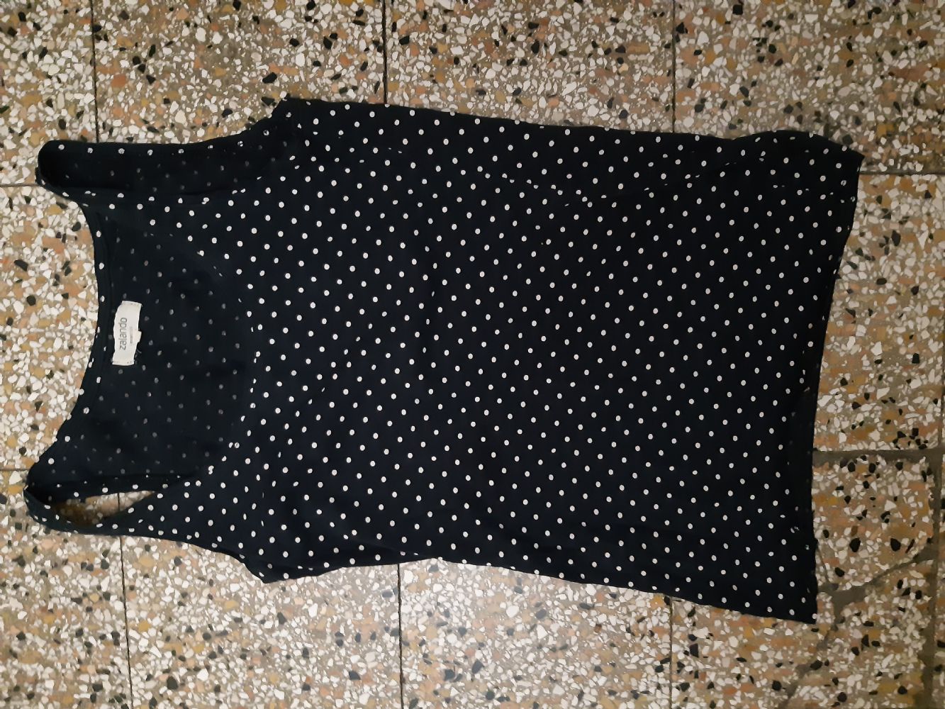 Descrizione:Blu a pois, cotone. Misure ascelle 34 cm lunghezza 56 cm.