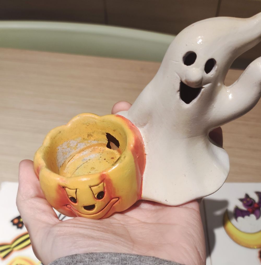 Due ragnetti fatti col fil di ferro ricoperto e un porta candeline con un buchino ma ancora sfruttabile.