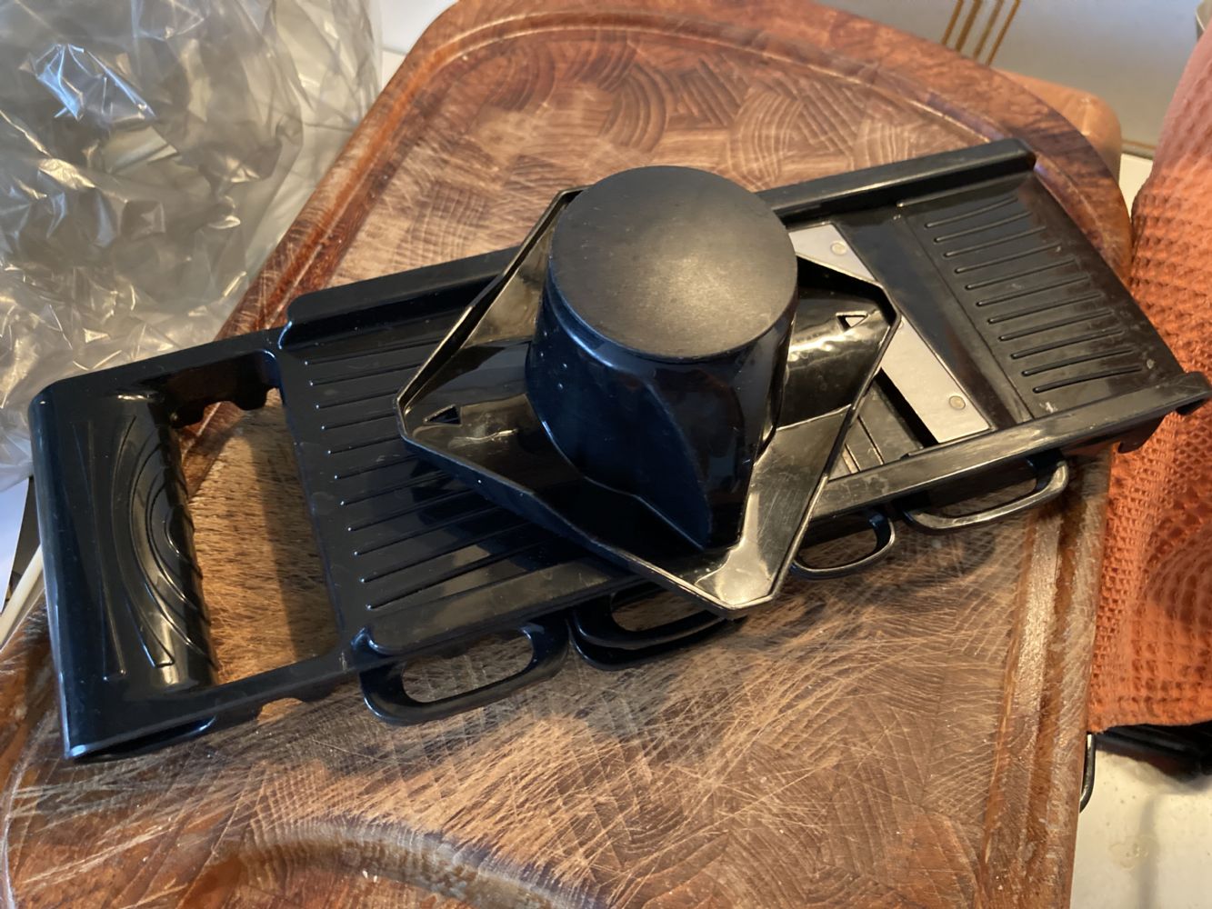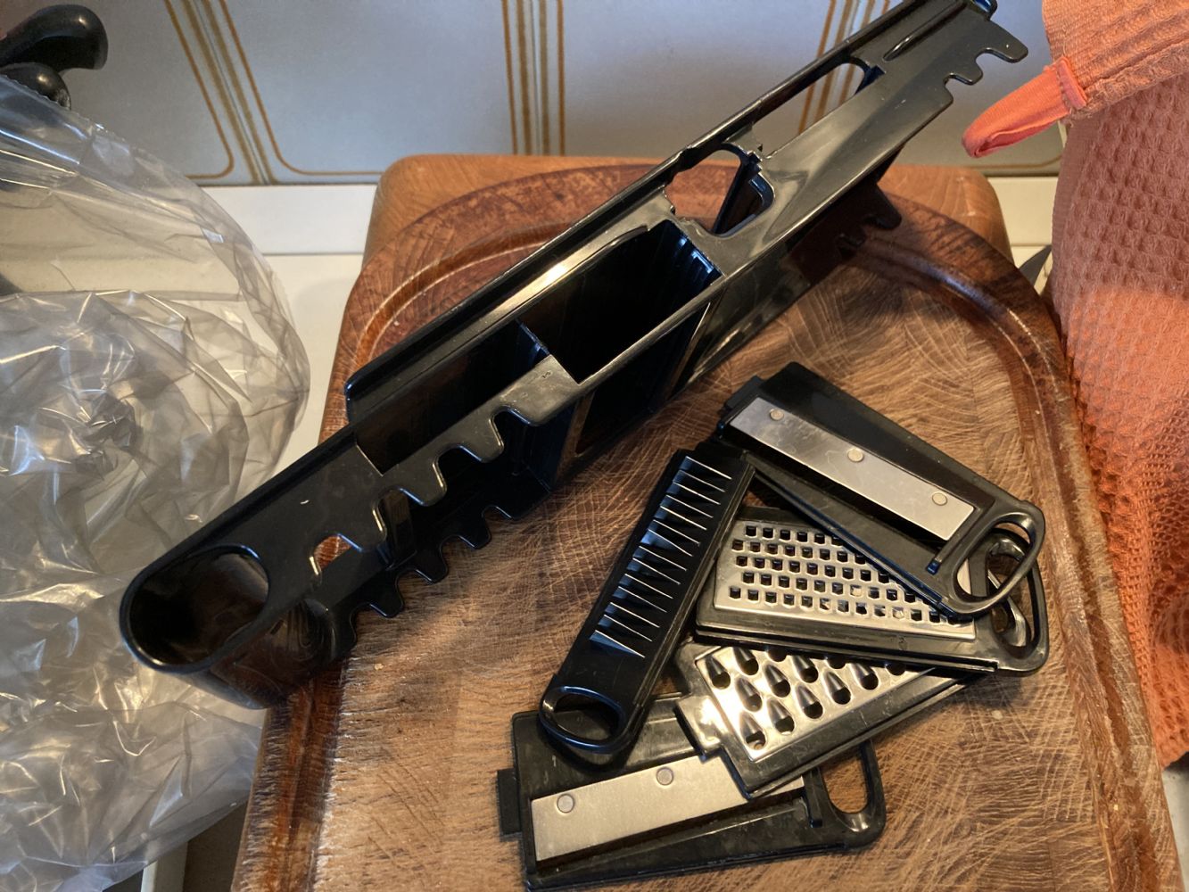 Descrizione:Presa qui ed utilizzata non tantissimo, ma i segni ci sono. Lame affilatissime. Ci sono lame intercambiabili di due spessori diversi, grattugie varie e accessorio per taglio a fiammifero.