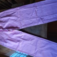 Rosa in cotone, tipo jeans, vita 39, lunghezza 105, fondo gamba a tubo.