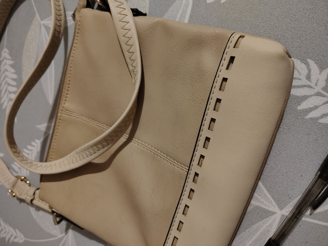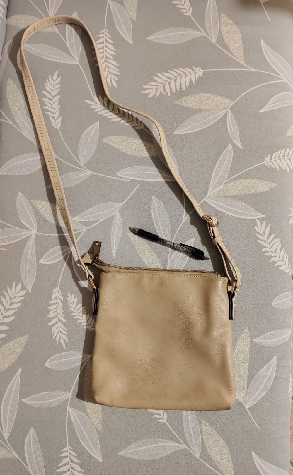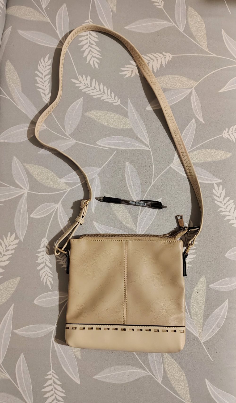 Descrizione:Borsa a tracolla colore beige in due tonalità. Composizione vedi foto