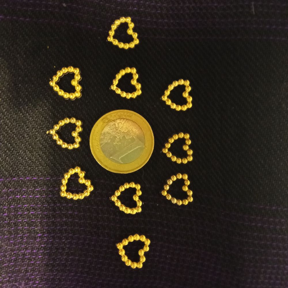 Descrizione:10 cuoricini di perle color oro materiale plastica