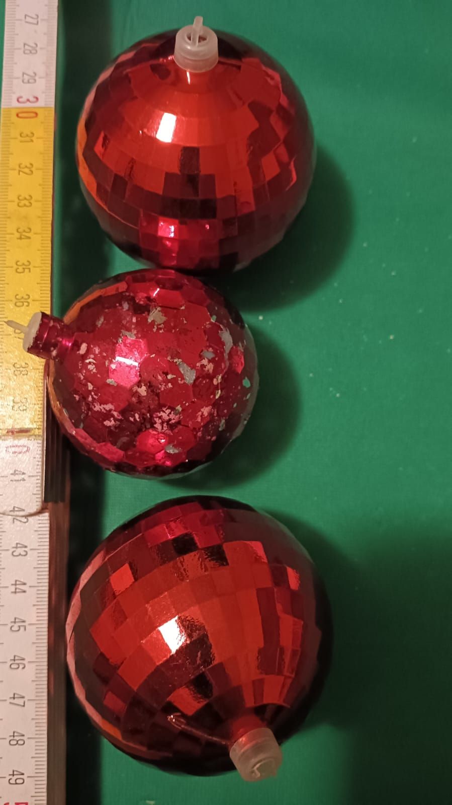 Descrizione:3 palline rosse mi pare che una abbia perso l appiglio per essere appesa,non so il materiale