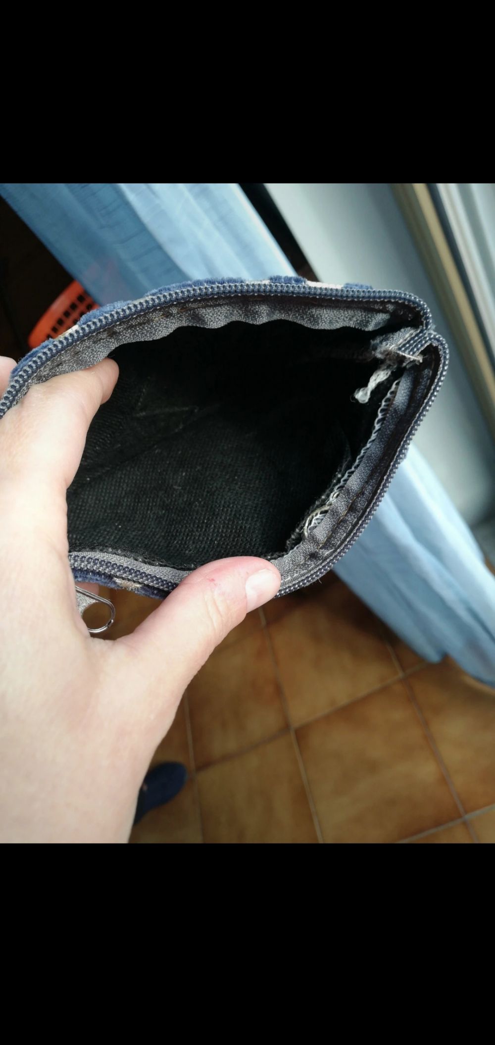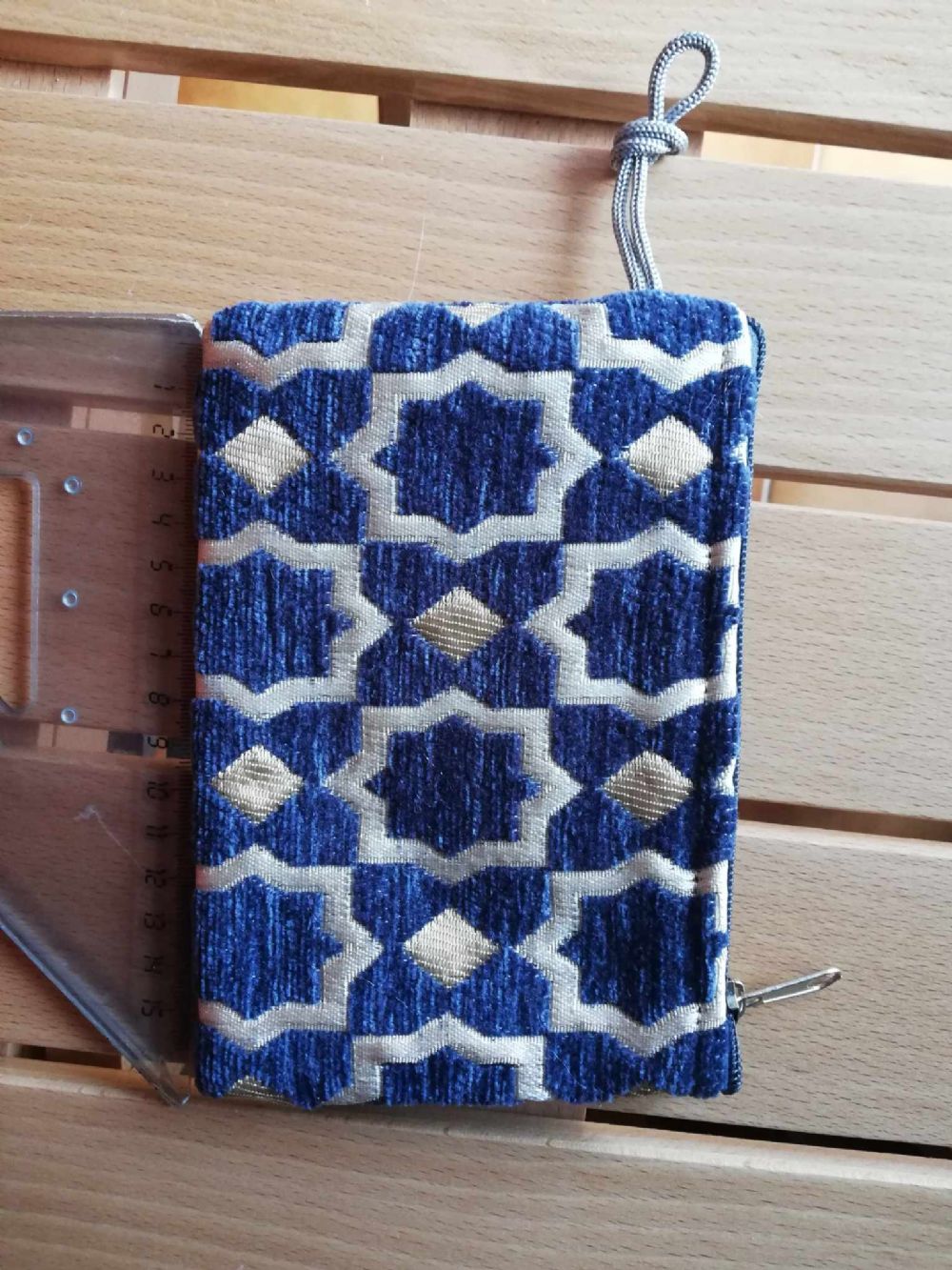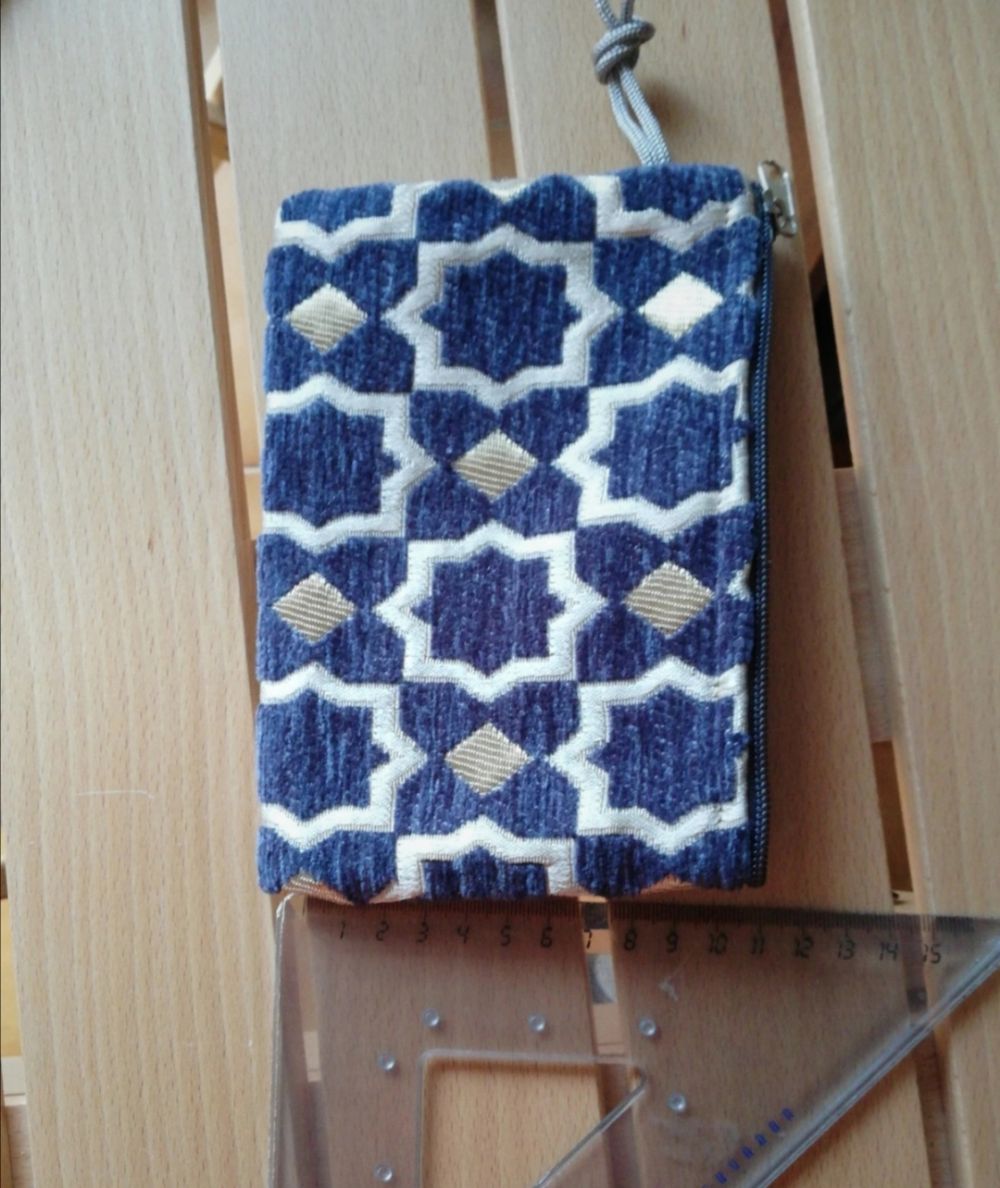 Pochette con zip in velluto. Artigianato marocchino. Colore blu ottanio. No confenzione.