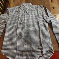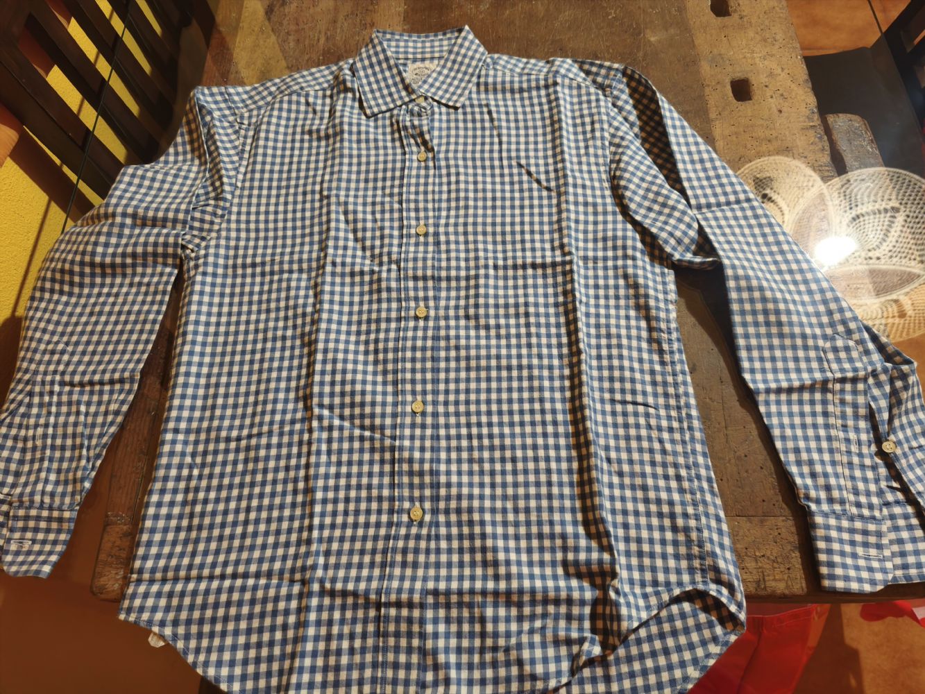 Anne Ciao, quadratini azzurro scuro, per me è da donna, ma ha allacciatura dei bottoni girata.