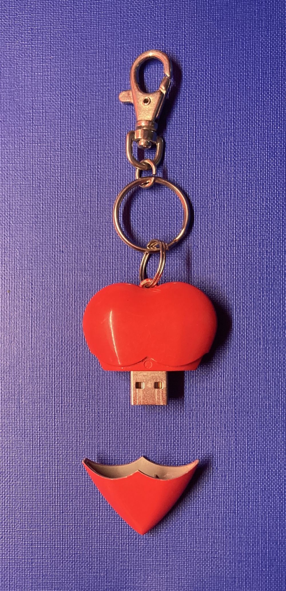 Chiave USB a forma di cuore, 512 MB di capacità, ha un gancio e si può attaccare a un portachiavi.