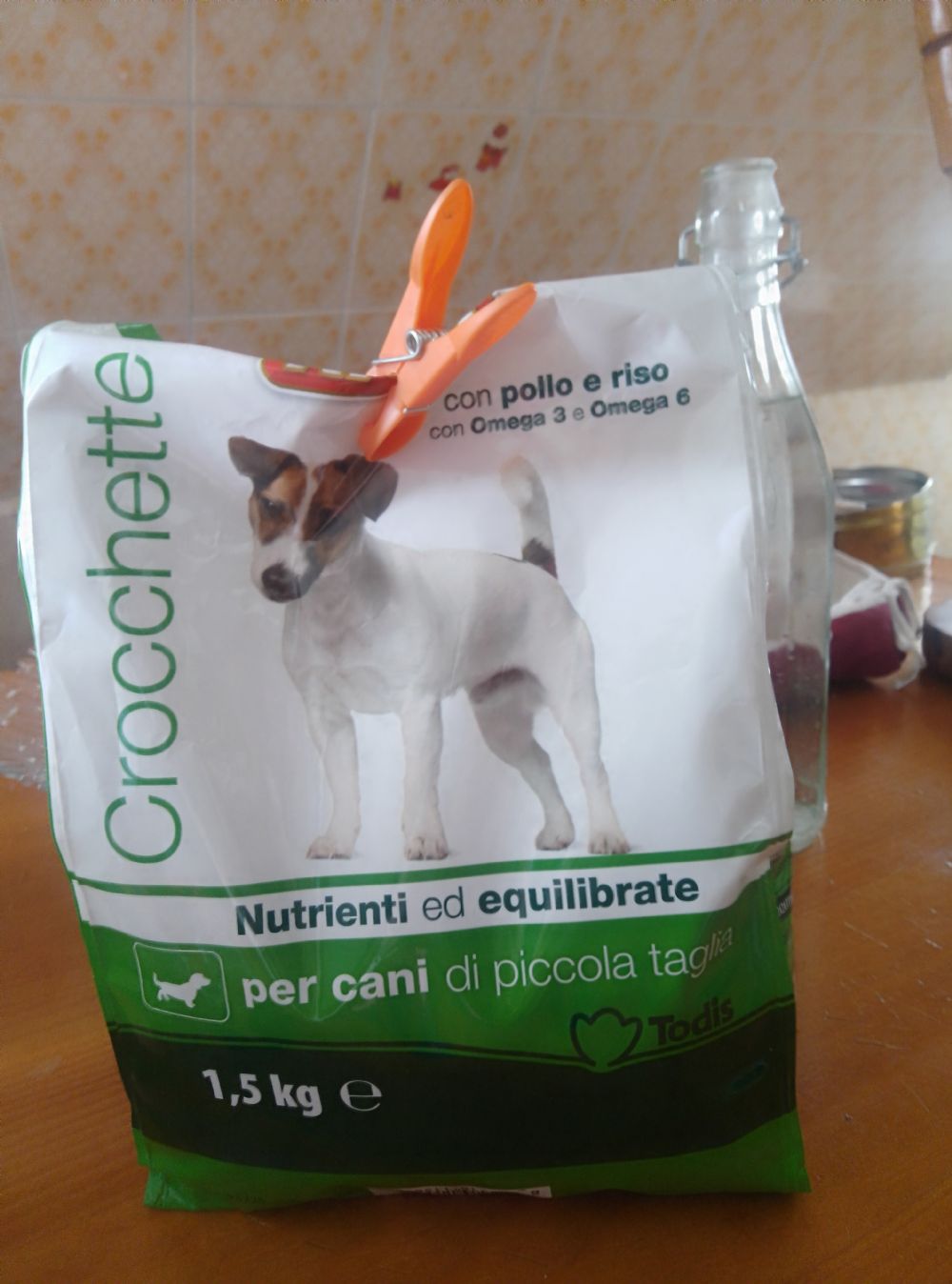 Crocchette per cani aperte due settimane fa per cane in stallo. Ci sono più della metà