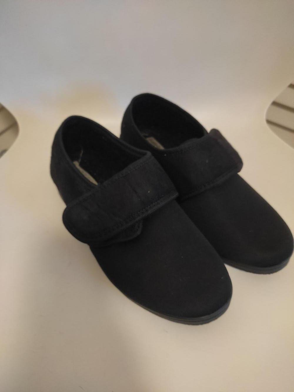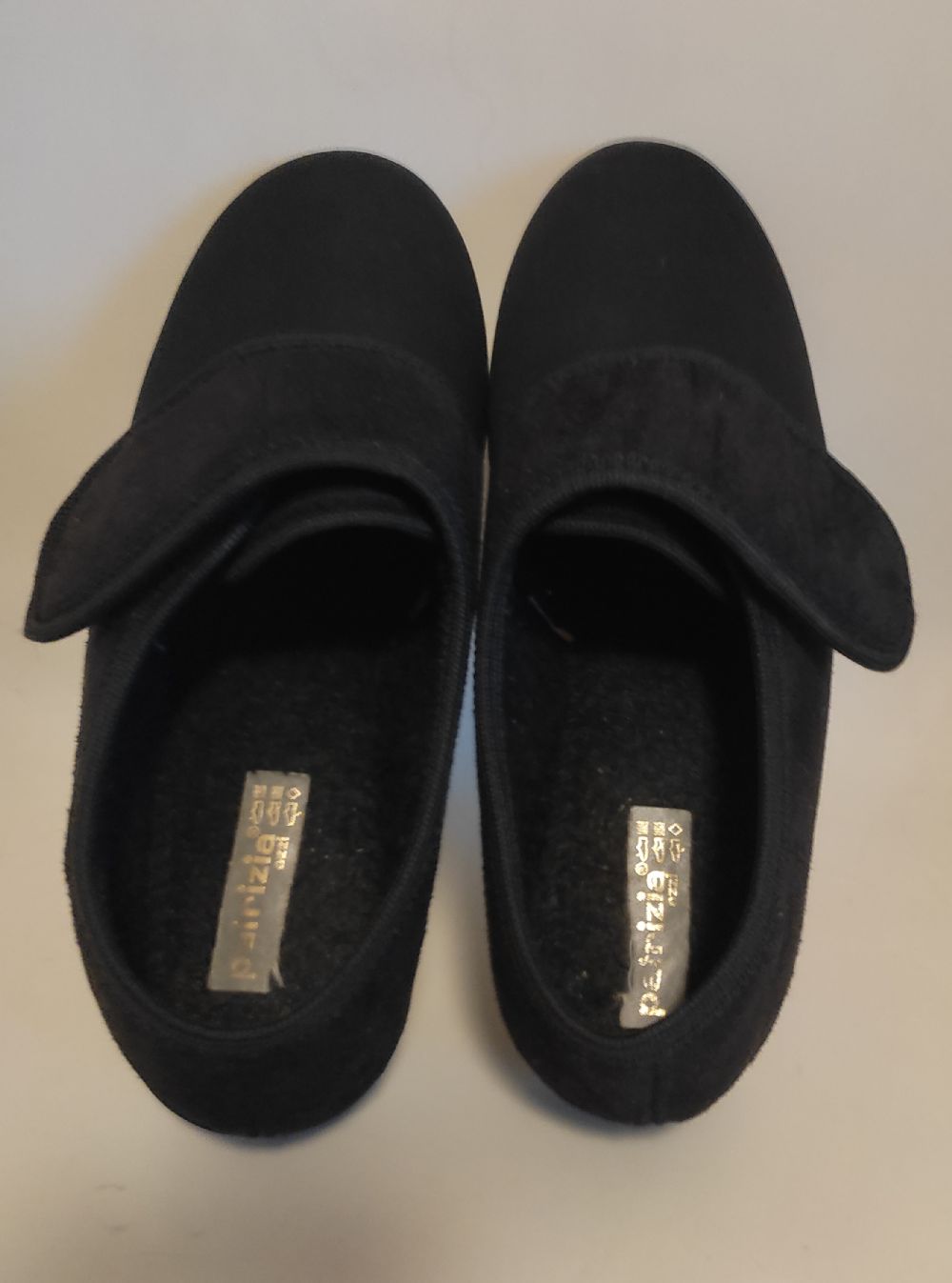 Sono molto comode, hanno la tomaia in tessuto imbottito, l''interno in tessuto caldo tipo panno e chiusura regolabile a strappo.