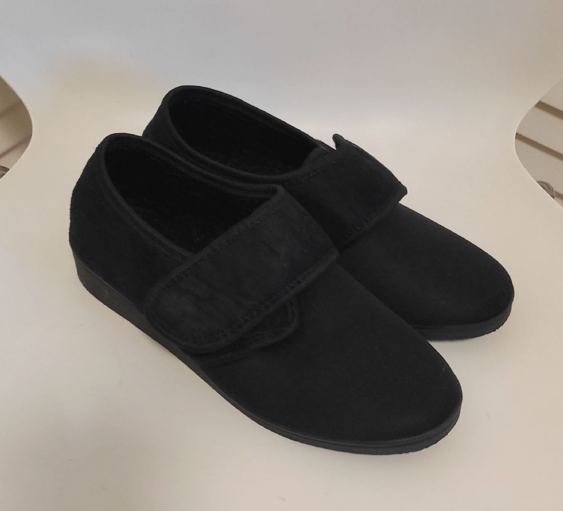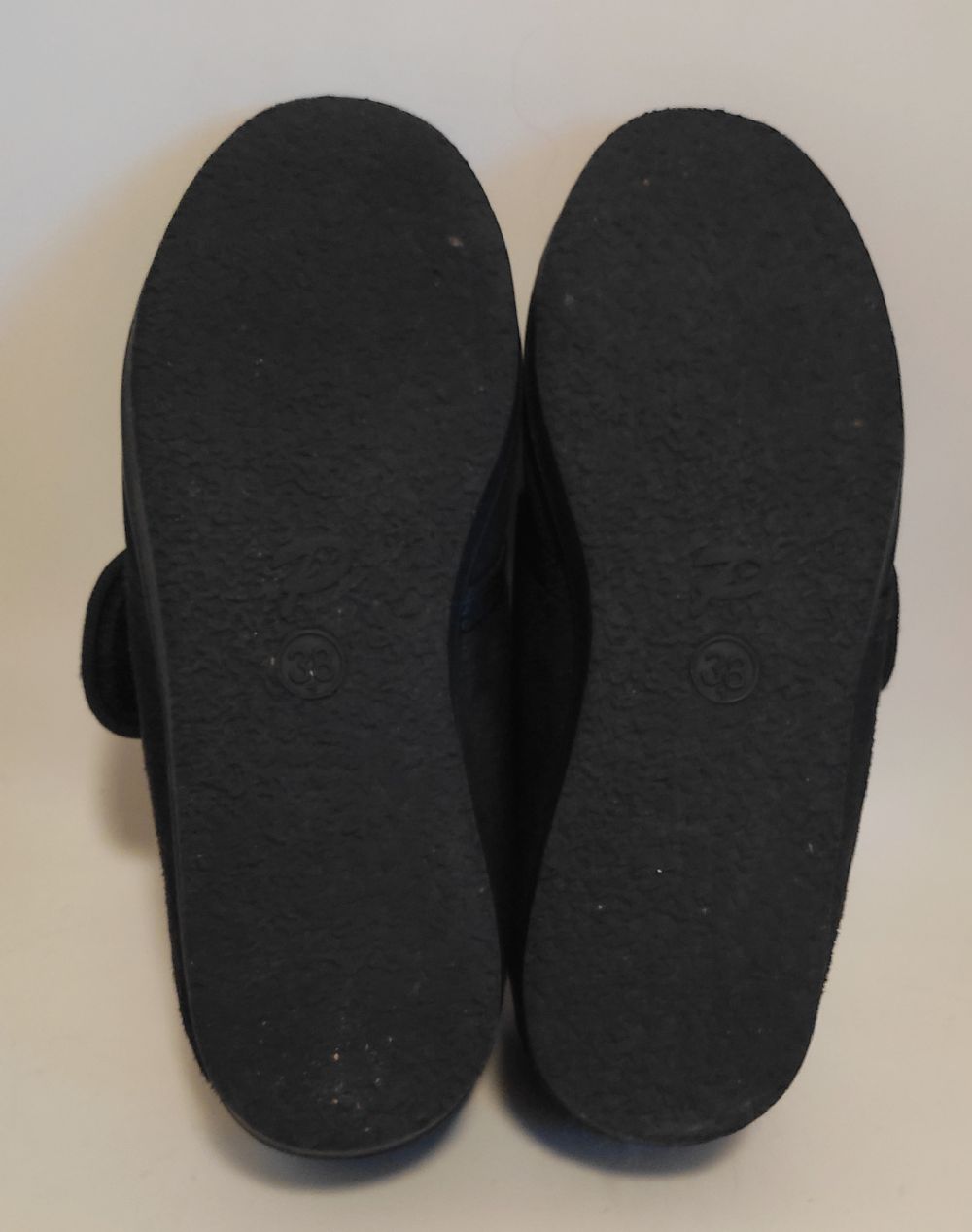 Sono molto comode, hanno la tomaia in tessuto imbottito, l'interno in tessuto caldo tipo panno e chiusura regolabile a strappo.