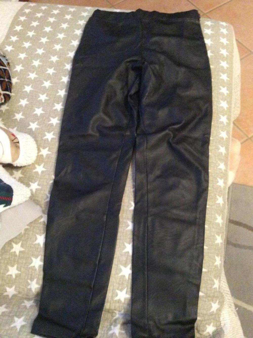 Descrizione:Similpelle, taglia L che veste S , fanno fatica a salire , difetto sulla vita che si e scucita , no spellature