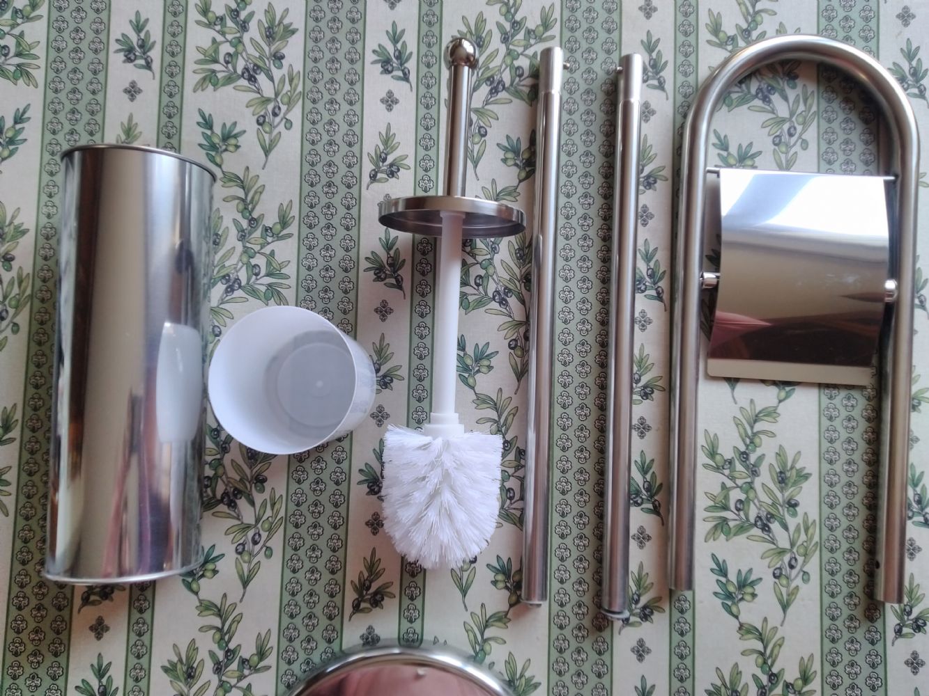 Descrizione:Piantana in acciaio porta rotolo e portascopettino, mai usata. È tutto intonso, a parte la base che ha diversi punti di ruggine, soprattutto nella parte non in vista. Qualche graffietto superficiale sul coperchio porta rotolo (tipo sposta di qui, metti di là...), due piccoli punti di ruggine sulla base del porta scopettino. Ritengo che intervenendo con uno spazzolino piccolo e con un po' di prodotto tipo fernovo si possa eliminare la ruggine e non dico portarlo allo stato originario, ma senz' altro fermare la ruggine.